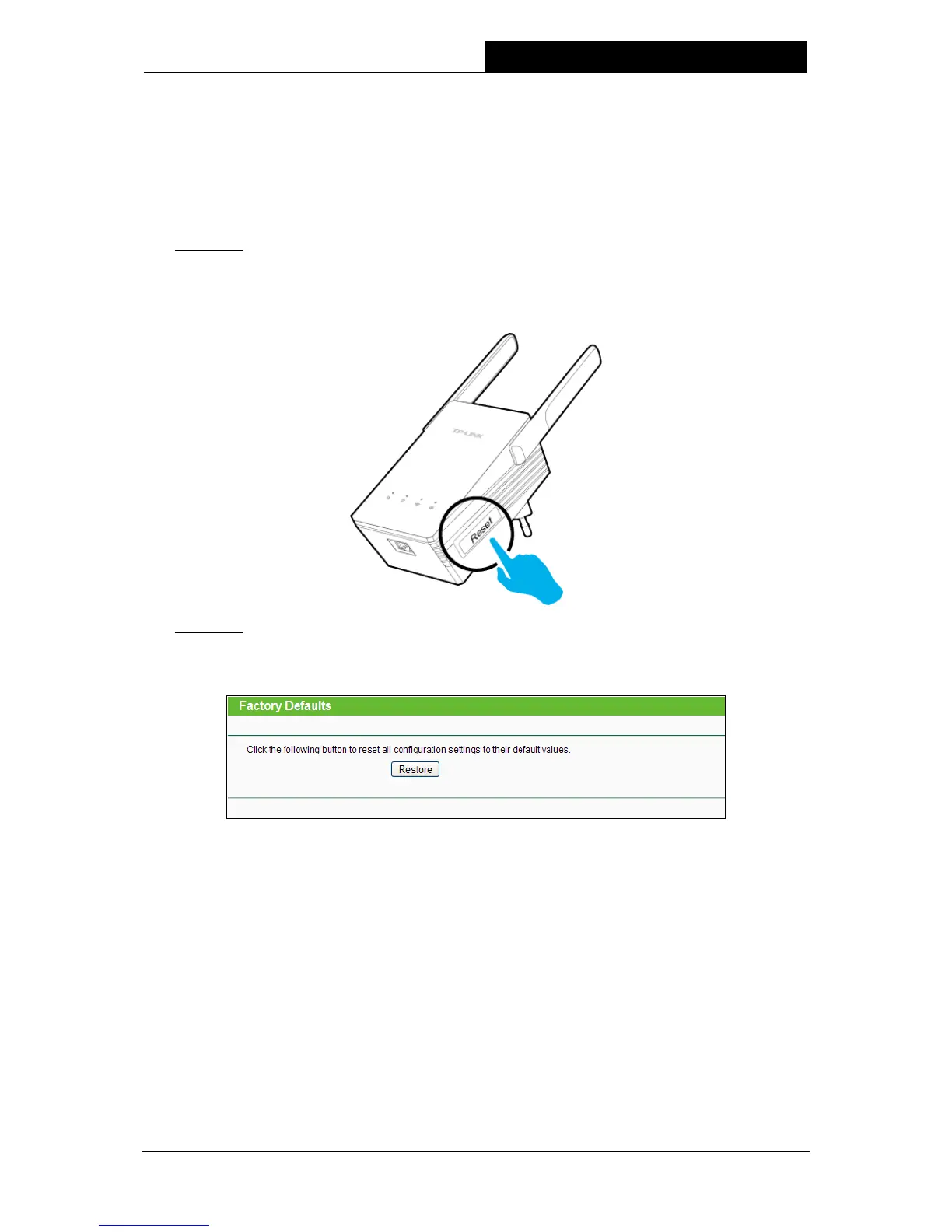 1) Restore the Range Extender’s configuration to its factory default settings. If you don’t
