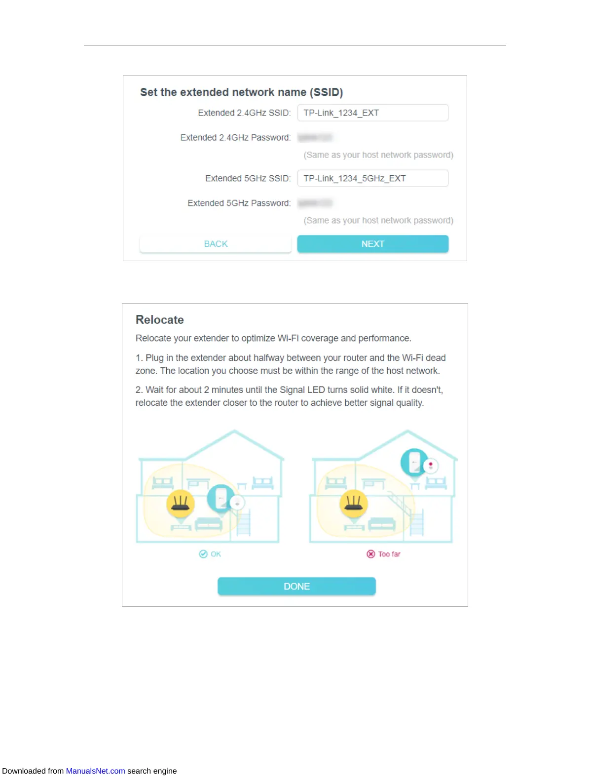 6 ) Follow web instructions to relocate your extender for optimal Wi-Fi coverage and