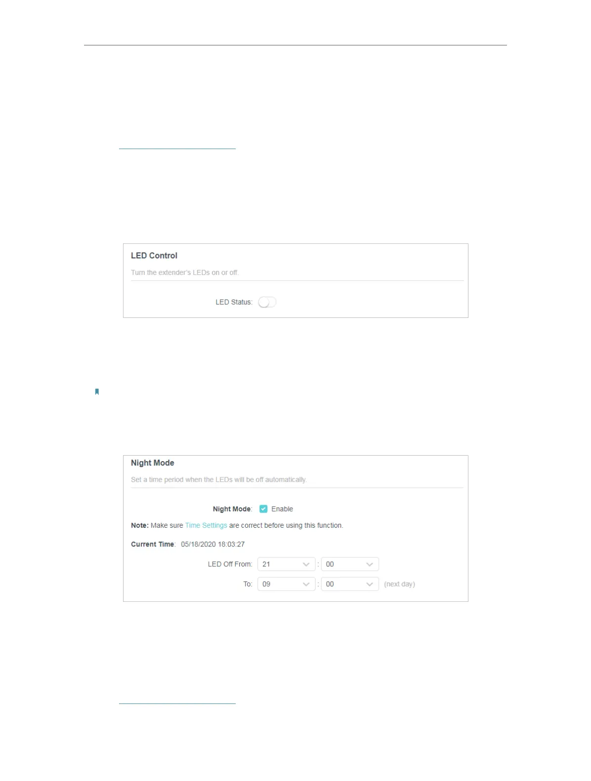 The effective LED off time is based on the time of the extender. You can go to Settings > System Tools > Time