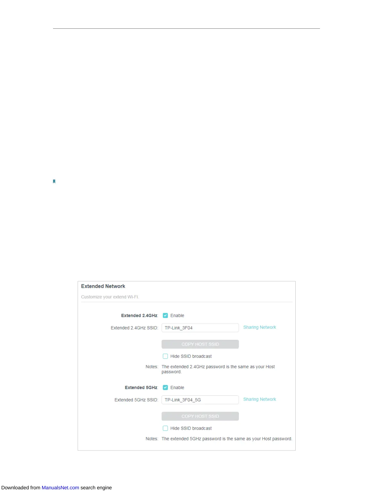 2. Create a new SSID in Extended 2.4GHz SSID or click COPY HOST SSID. The value is
