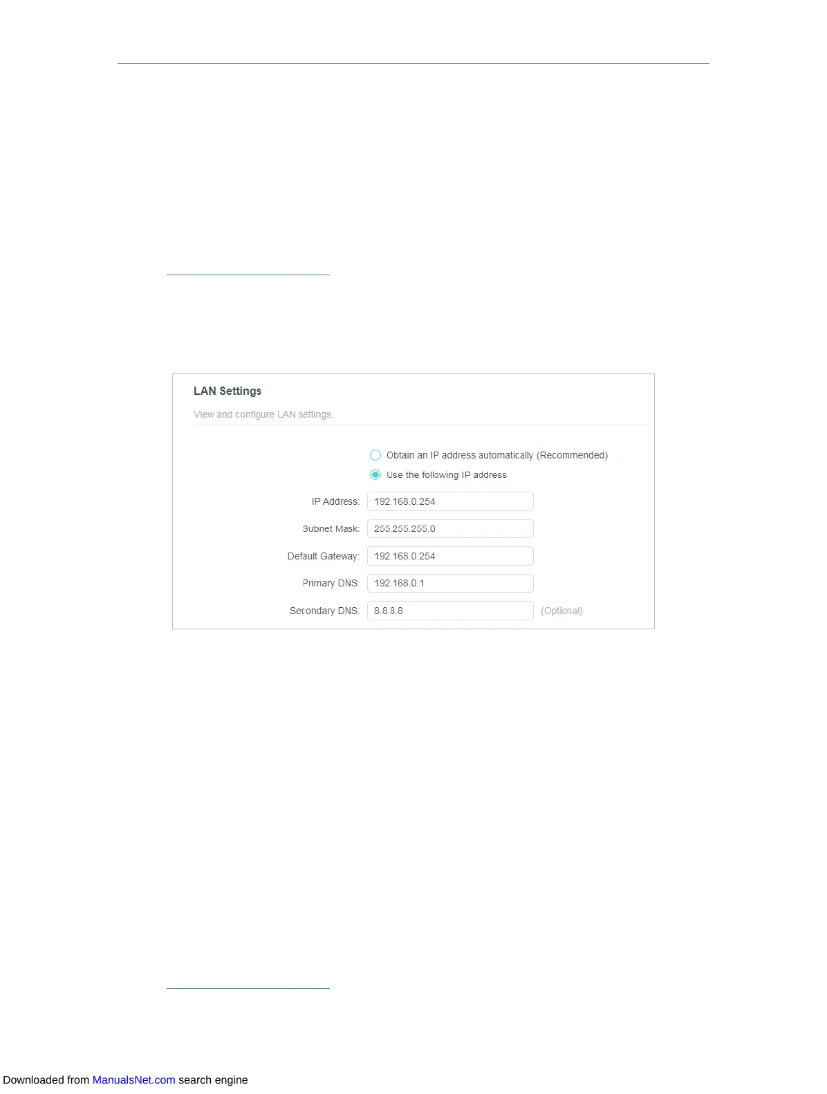 the web management page. The LAN IP address, together with the Subnet Mask, also