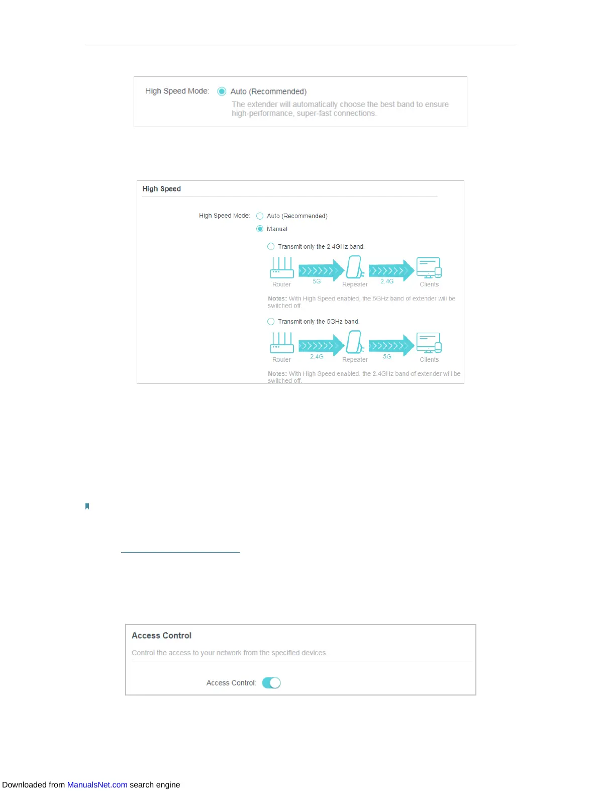 • Select the Manual mode and choose to transmit 2.4GHz band or 5GHz band