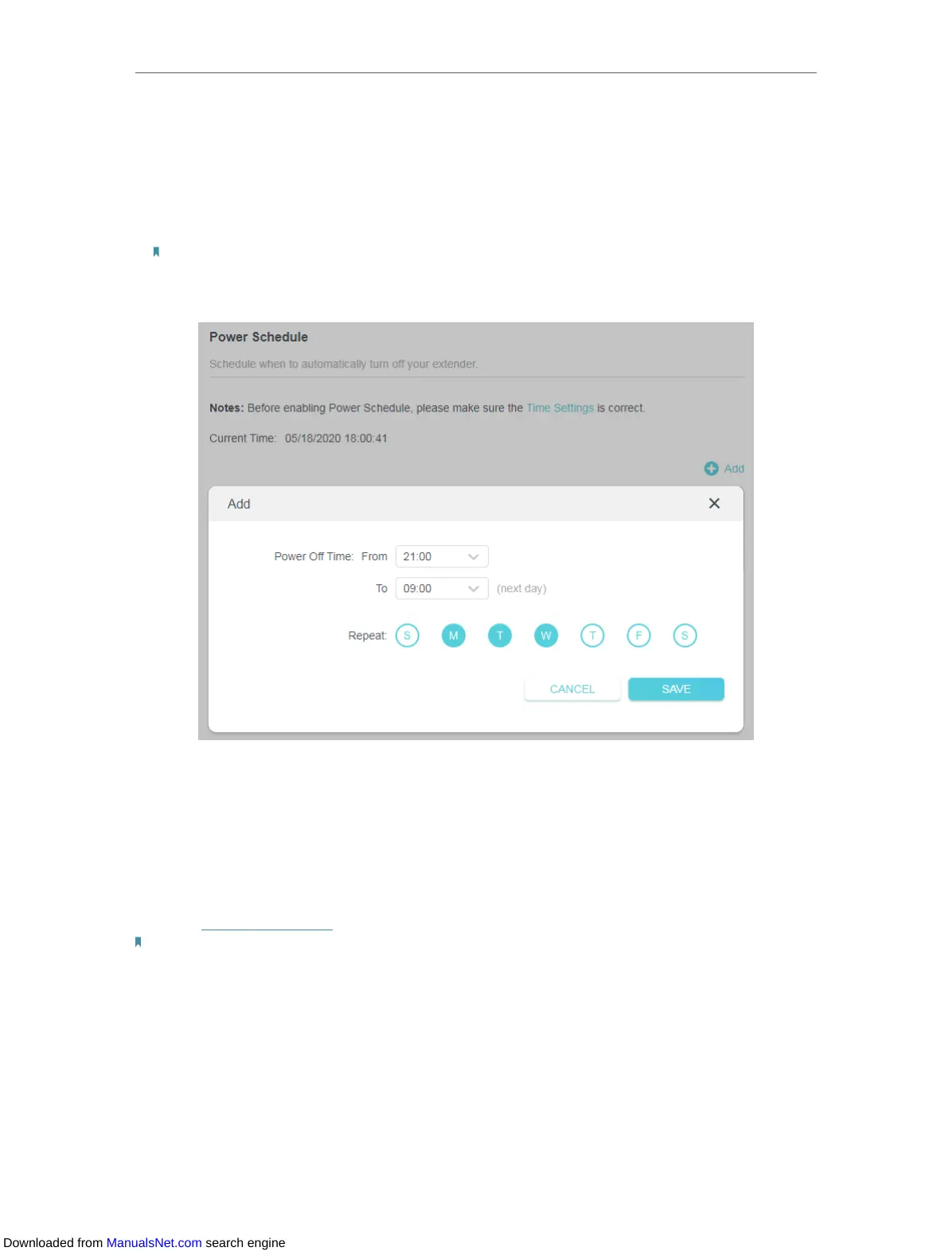 The effective power off time is based on the time of the extender. You can go to Settings > System Tools > Time