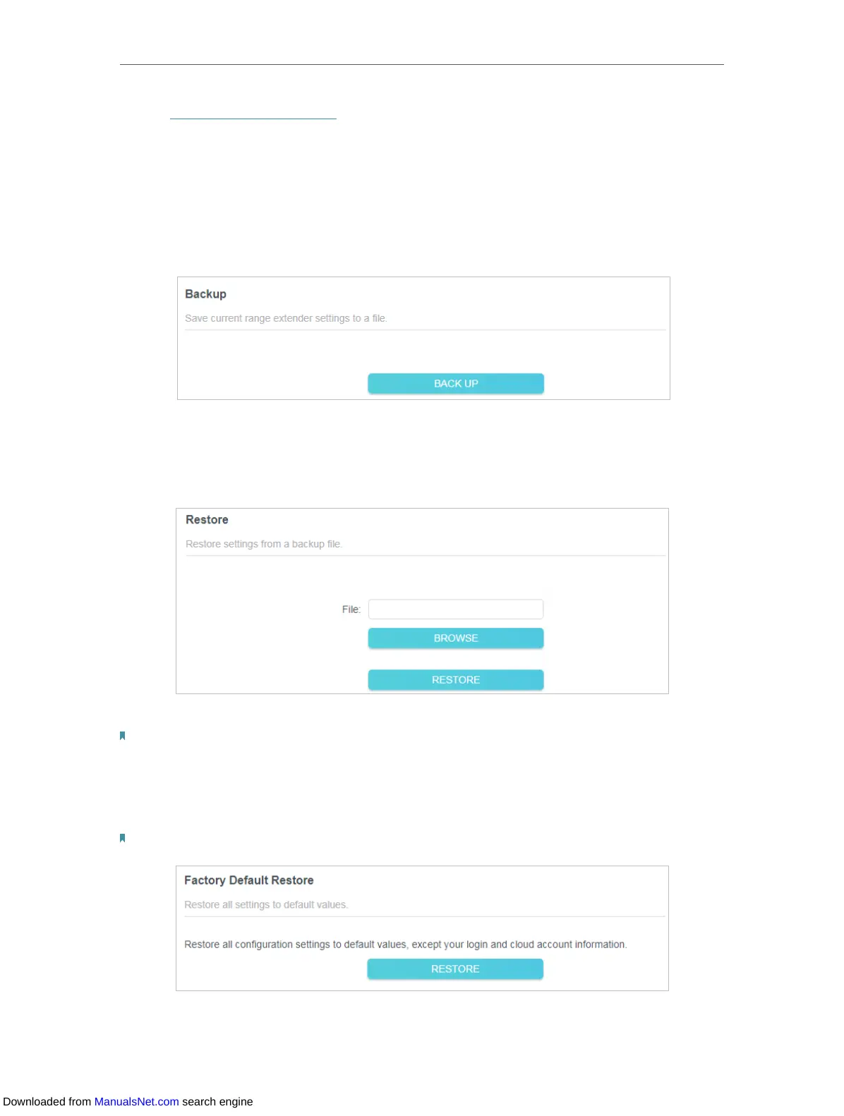 Click BACK UP to save a copy of the current settings to your local computer. A ‘.bin’ file