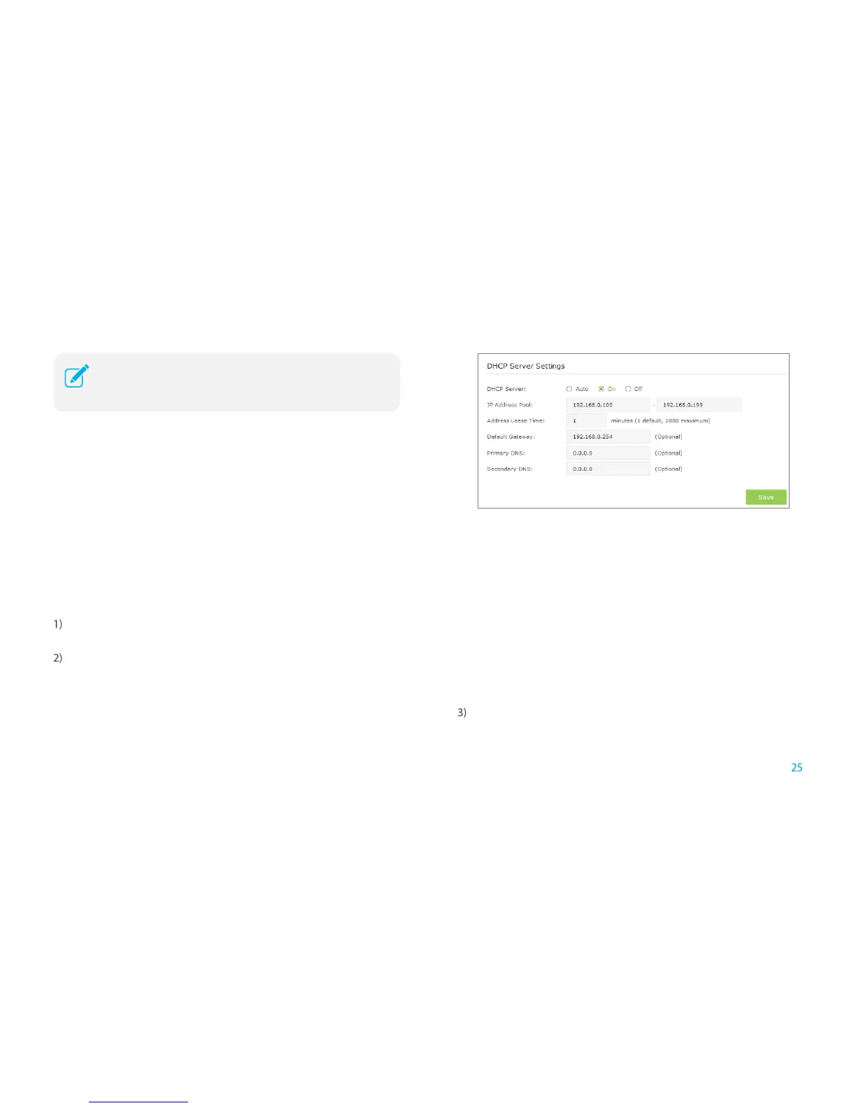 If the DHCP Server is On, please configure it as shown in the figure bleow.