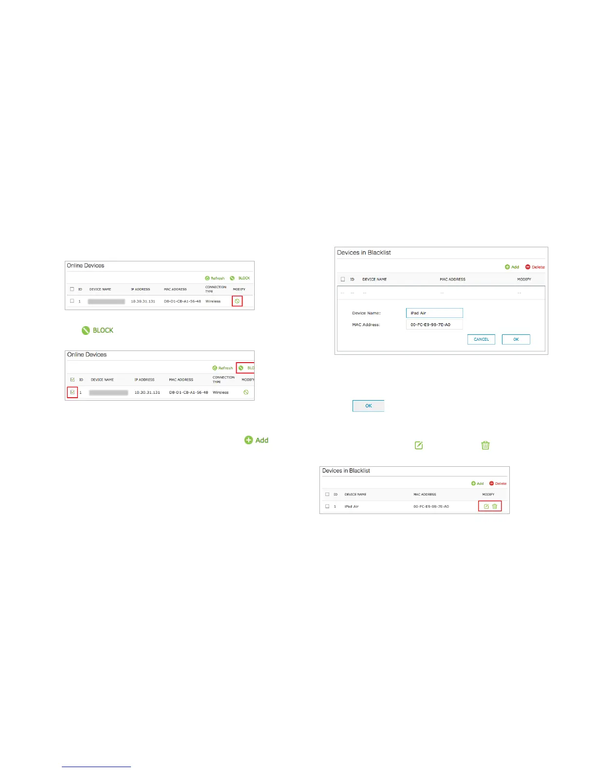 1) Under the Devices in Blacklist or Devices in Whitelist, click