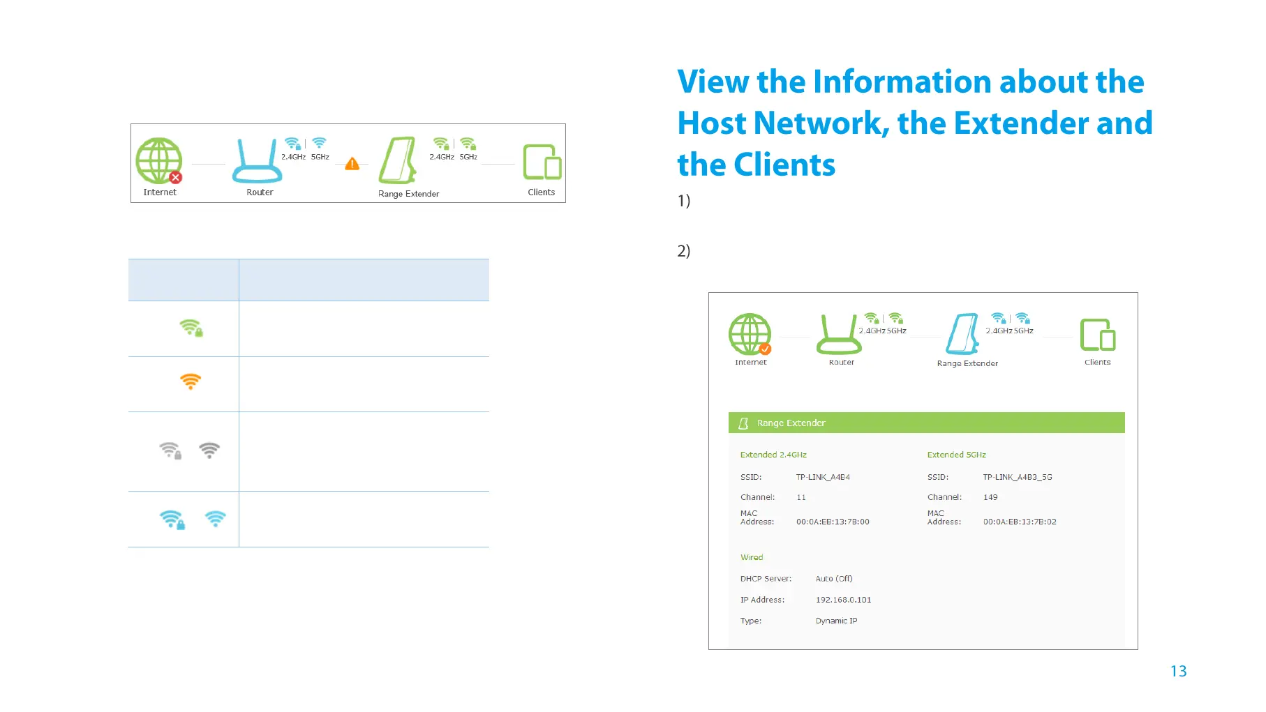 Instructions for the icons of 2.4GHz/5GHz wireless status: