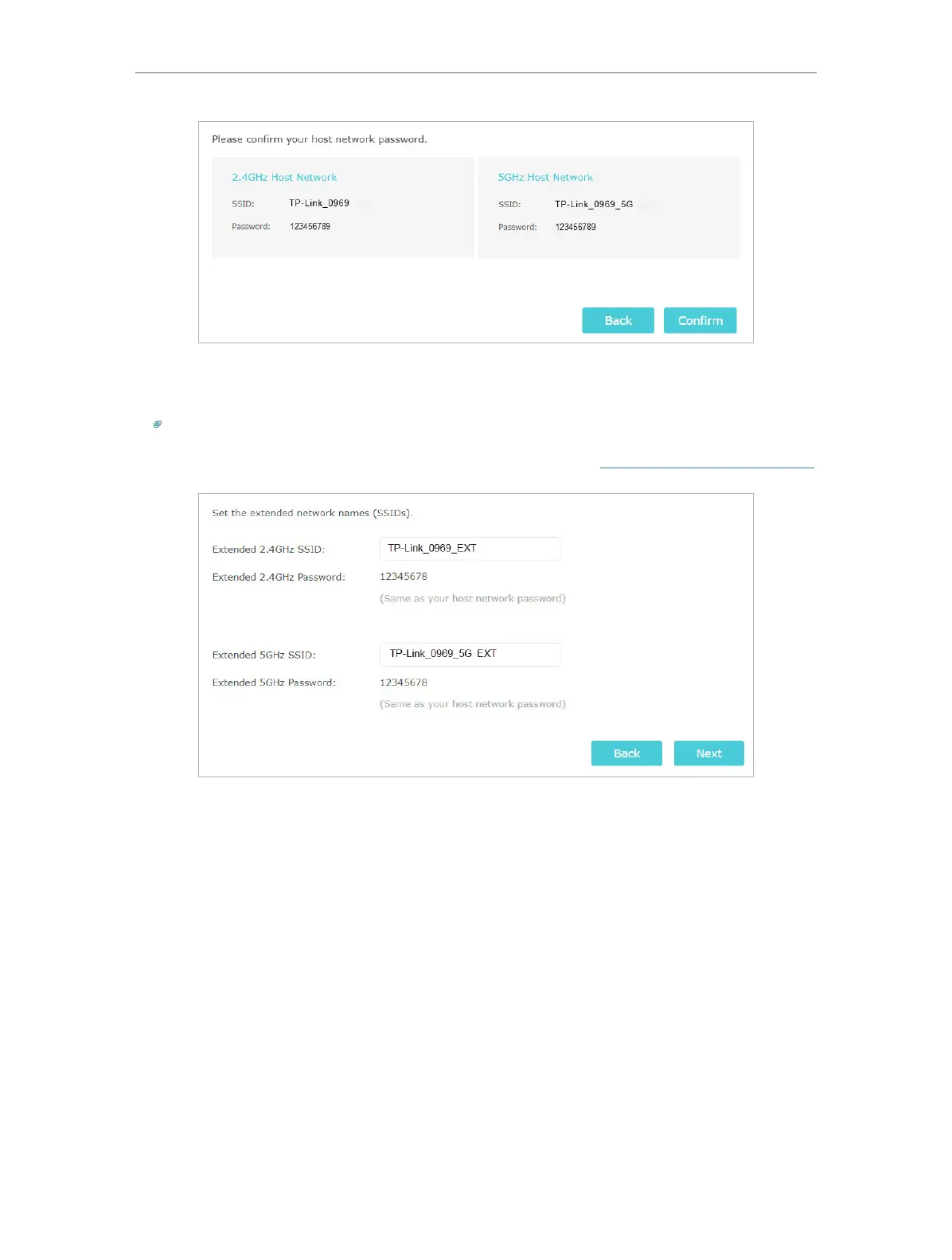 5 ) Either keep the default SSIDs (network names) or customize them for the