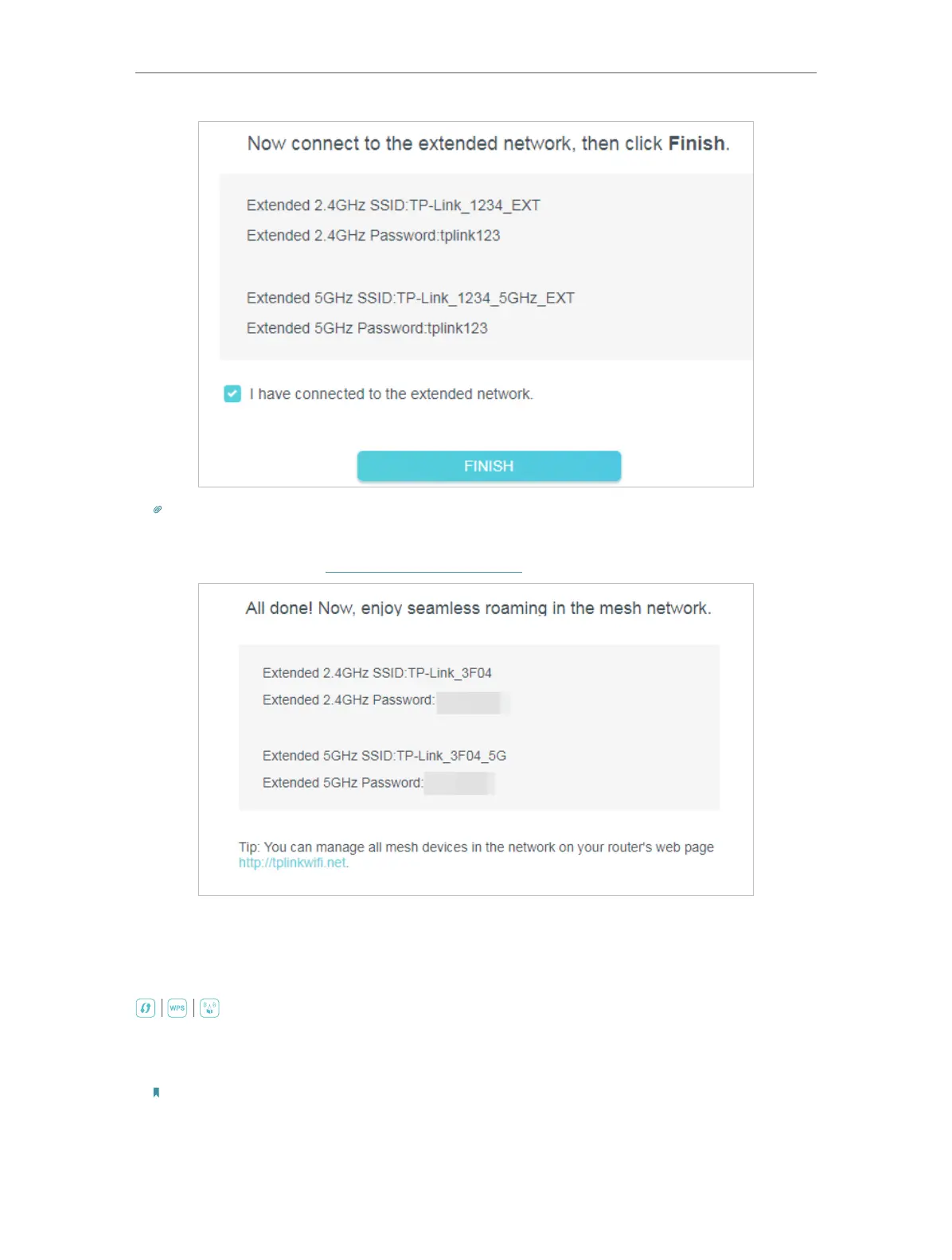 If you connect the extender to a TP-Link OneMesh router and a success screen as below appears at the end of the