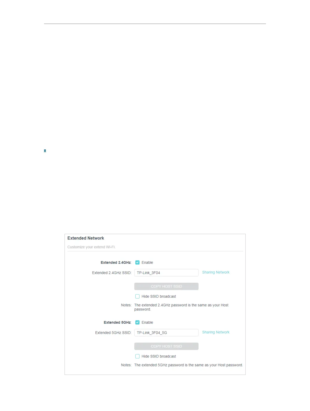 2. Create a new SSID in Extended 2.4GHz SSID or click COPY HOST SSID. The value is
