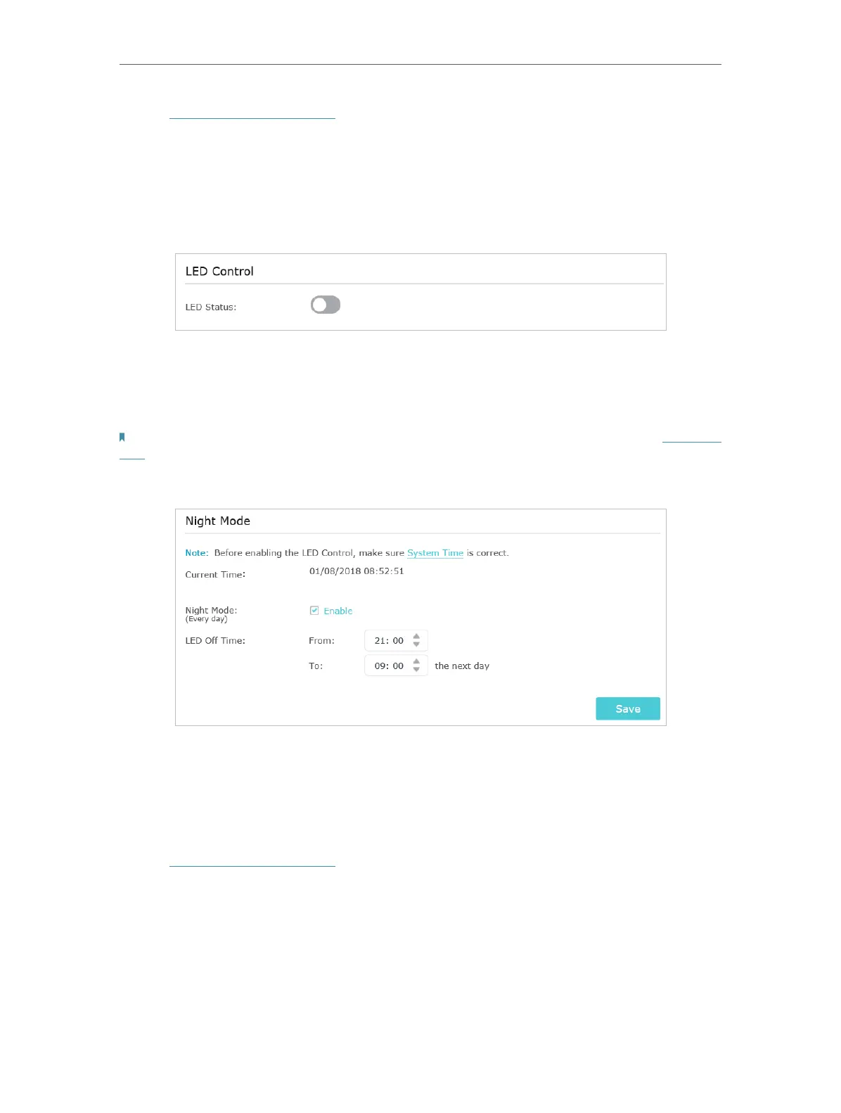 Note: The effective time schedule for Night Mode is based on the system time of the extender. Refer to Set System