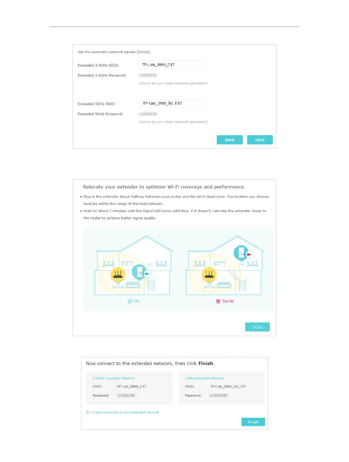 6 ) Follow web instructions to relocate your extender for optimal Wi-Fi coverage