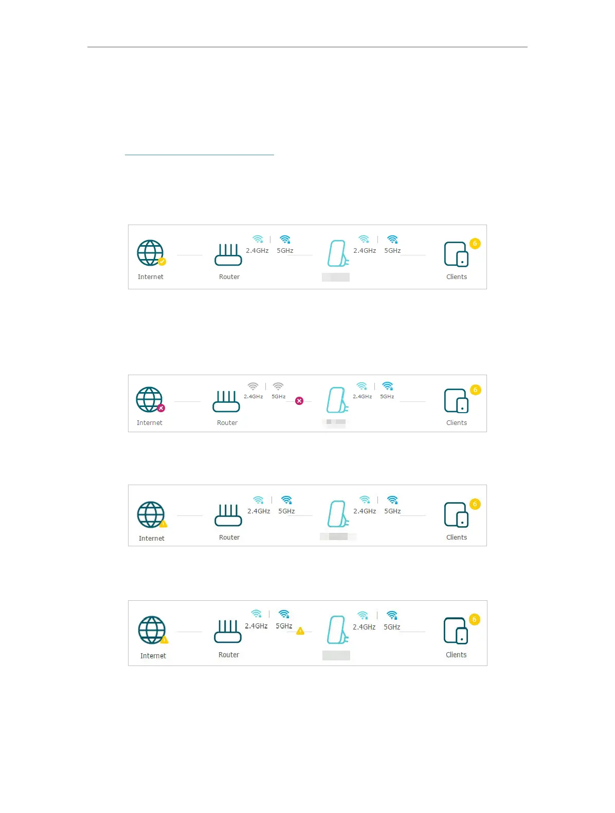 Click the icon of the Internet/Router/Range Extender/Clients to view corresponding