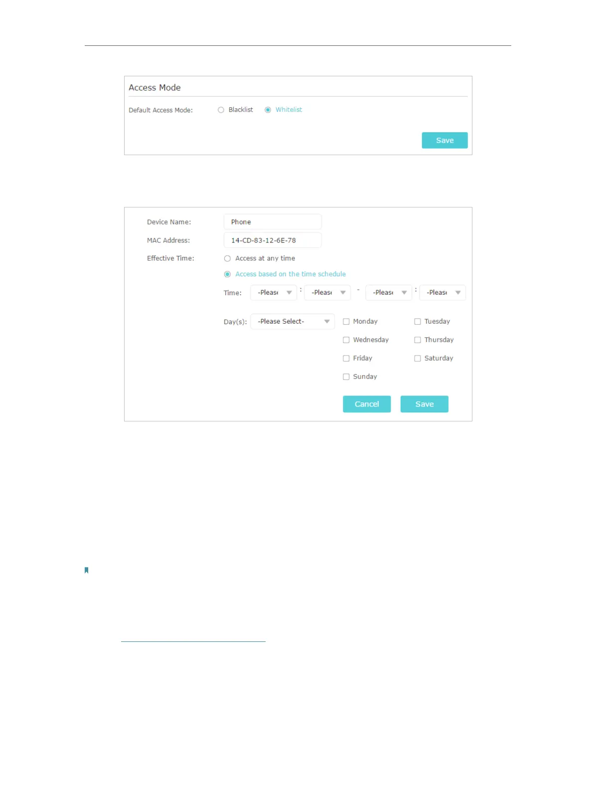 2. Click Add in the Devices in Whitelist table. Enter the Device Name and MAC Address.