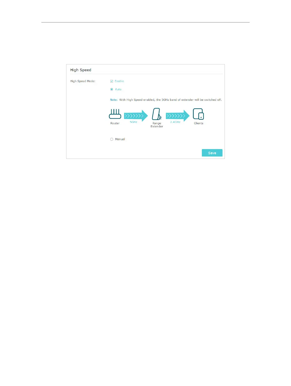 4. Select the Auto mode. The extender will decide which band the high-speed network