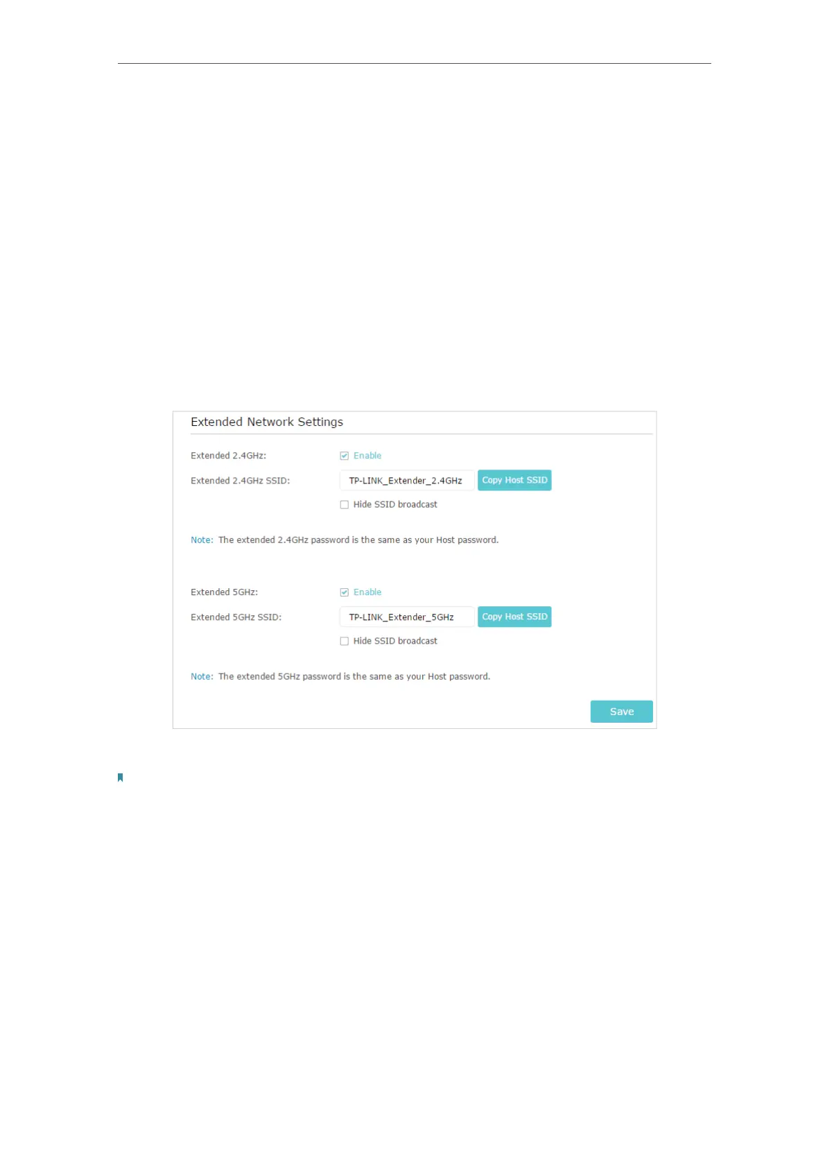 2. Create a new SSID in Extended 2.4GHz SSID or click Copy Host SSID. The value is