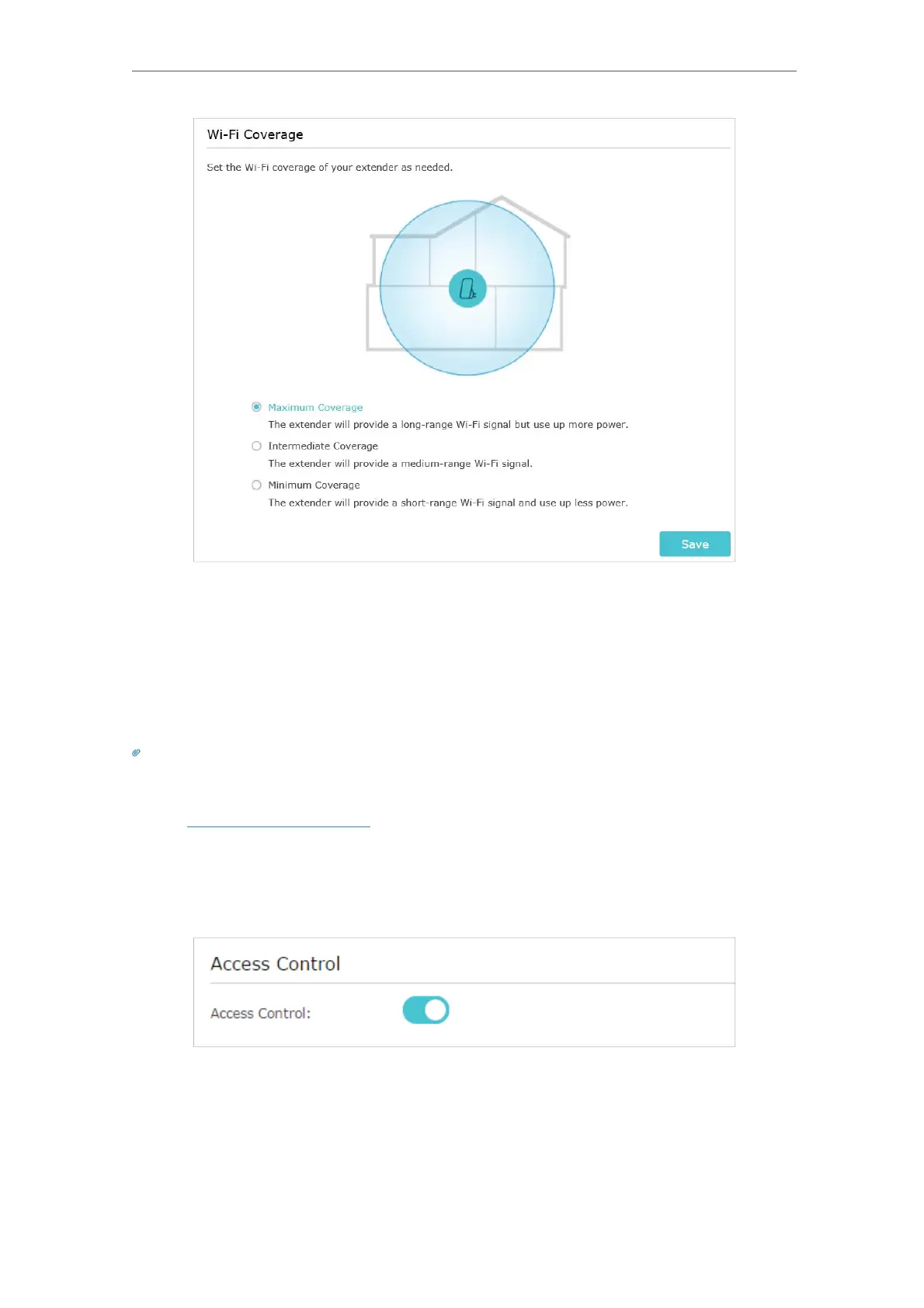 No access control settings is needed for the extender.