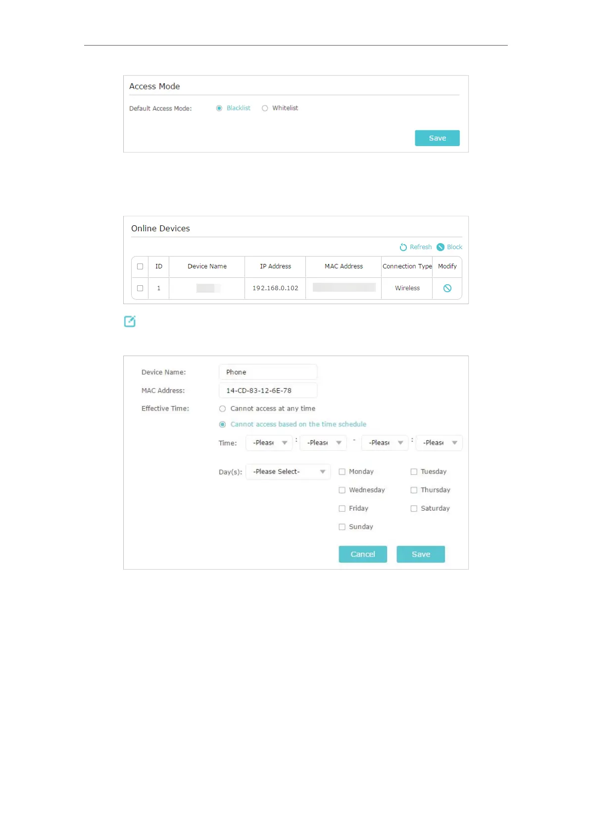 4. Click in the Devices in Blacklist table to set the Effective Time for a certain entry