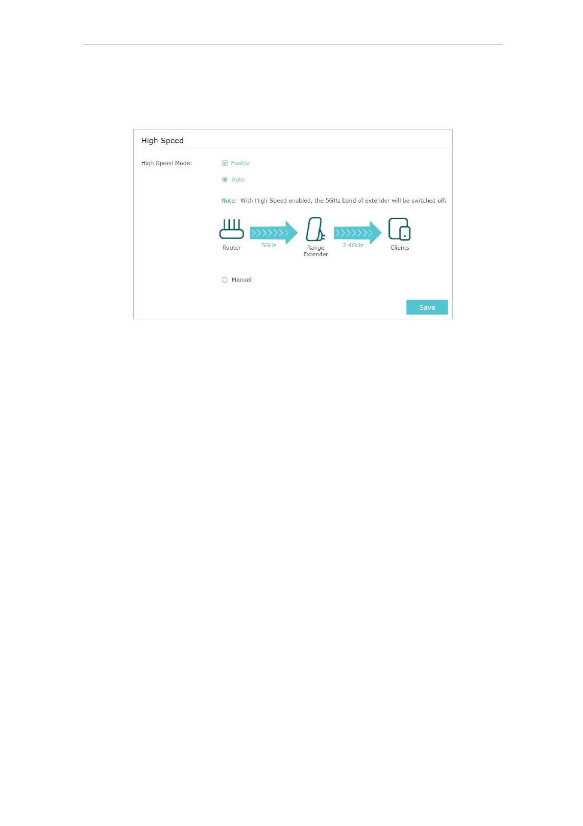 4. Select the Auto mode. The extender will decide which band the high-speed network