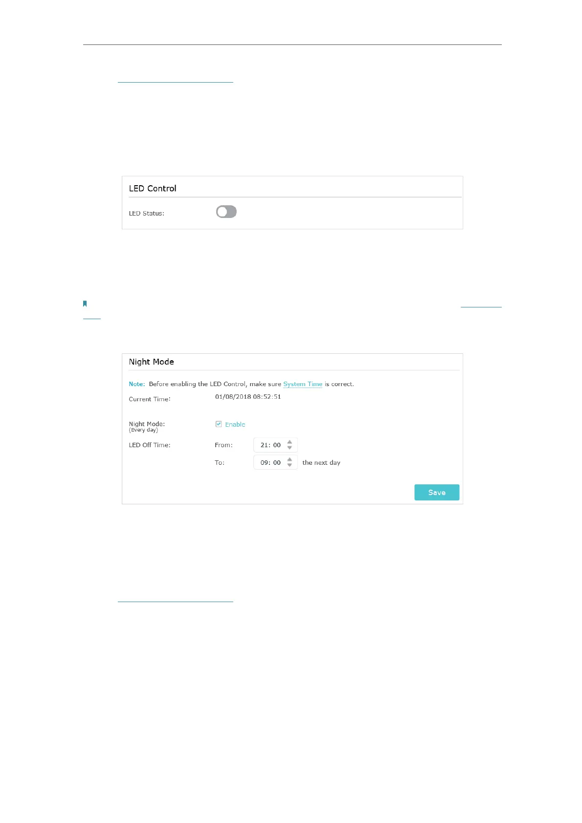 Note: The effective time schedule for Night Mode is based on the system time of the extender. Refer to Set System