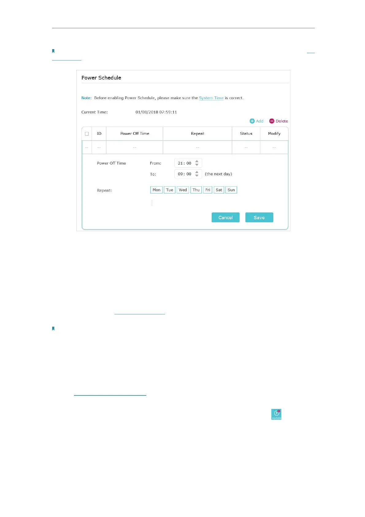 Note: The effective time schedule for Power Schedule is based on the system time of the extender. Refer to Set