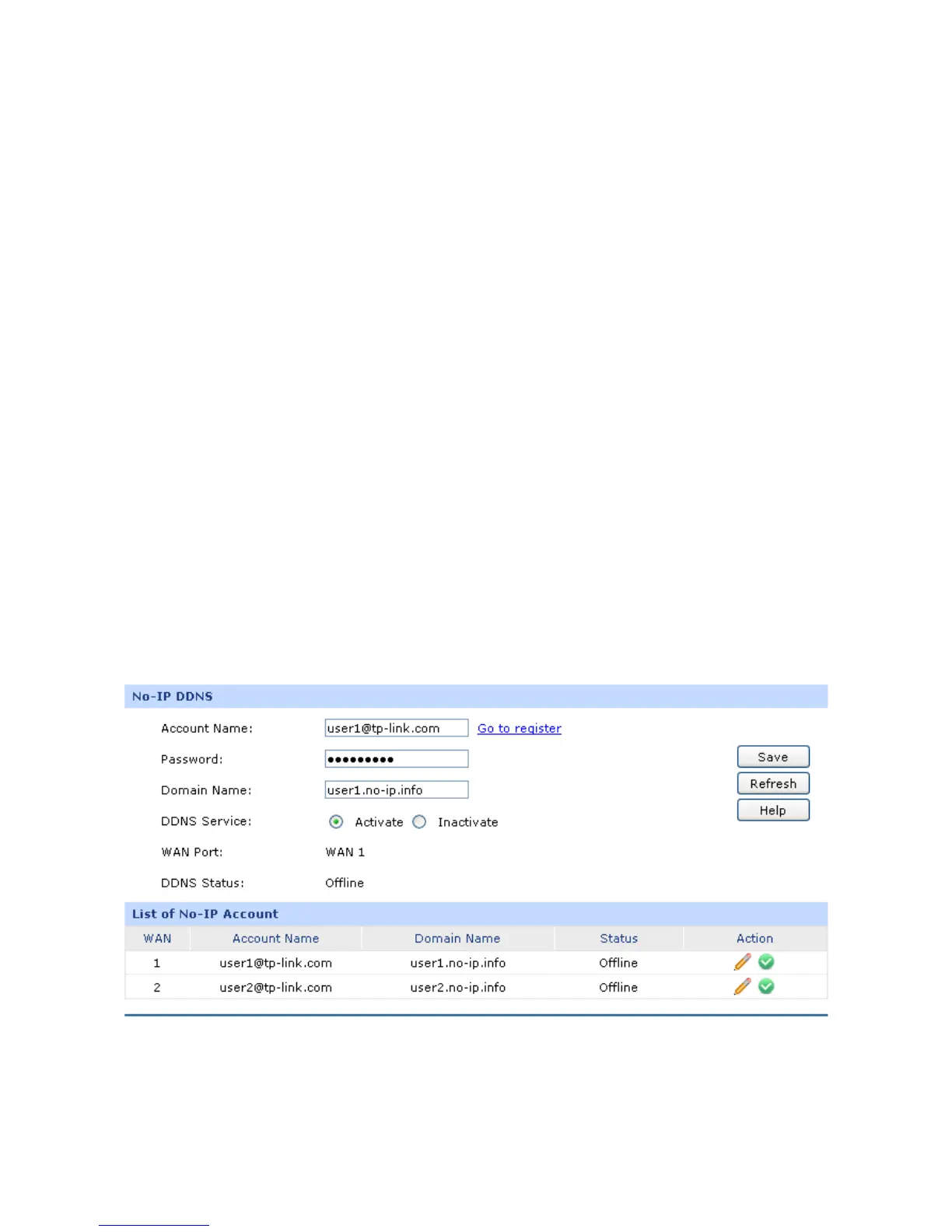 Choose the menu Services→Dynamic DNS→No-IP to load the following page.