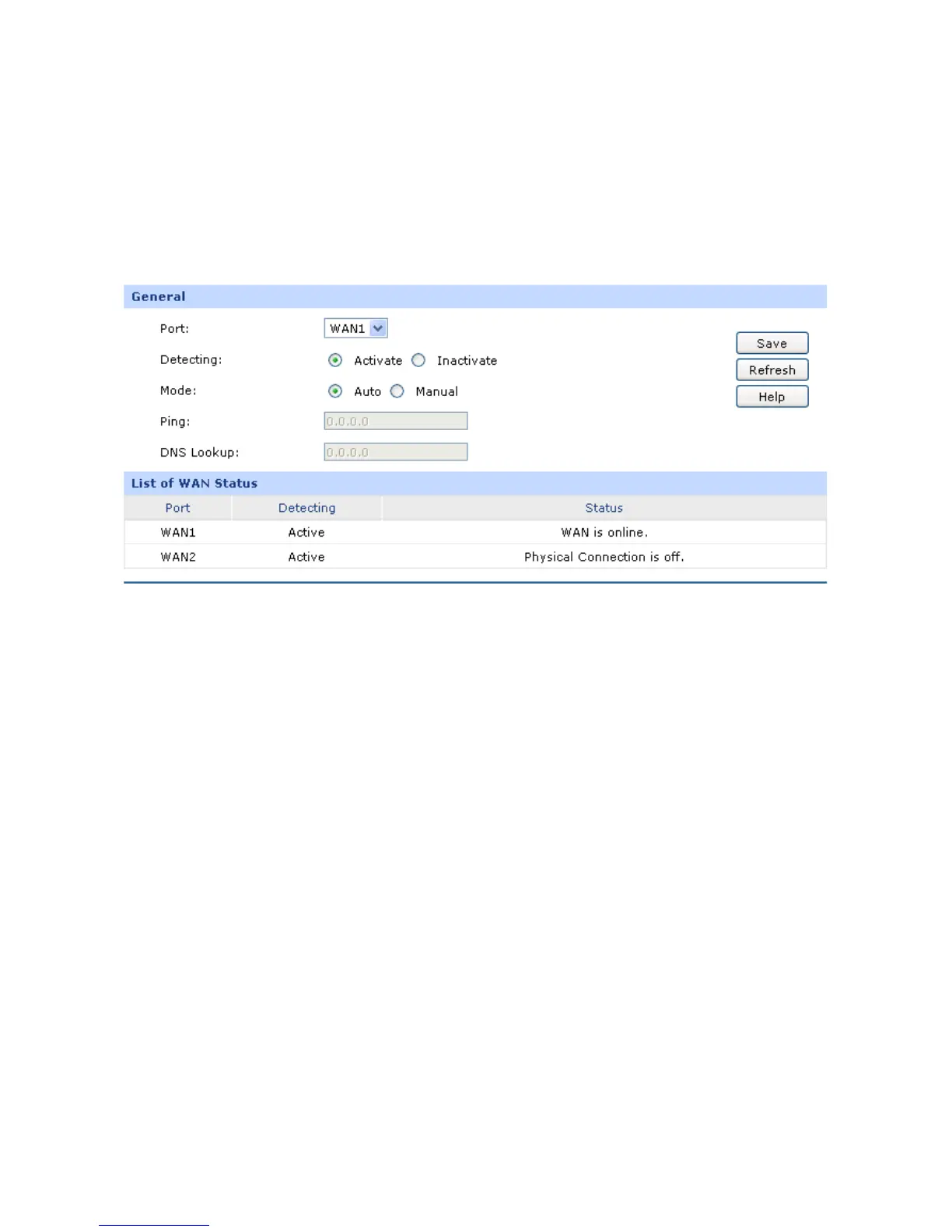 Lookup. When Online Detection is inactive, WAN status will be detected