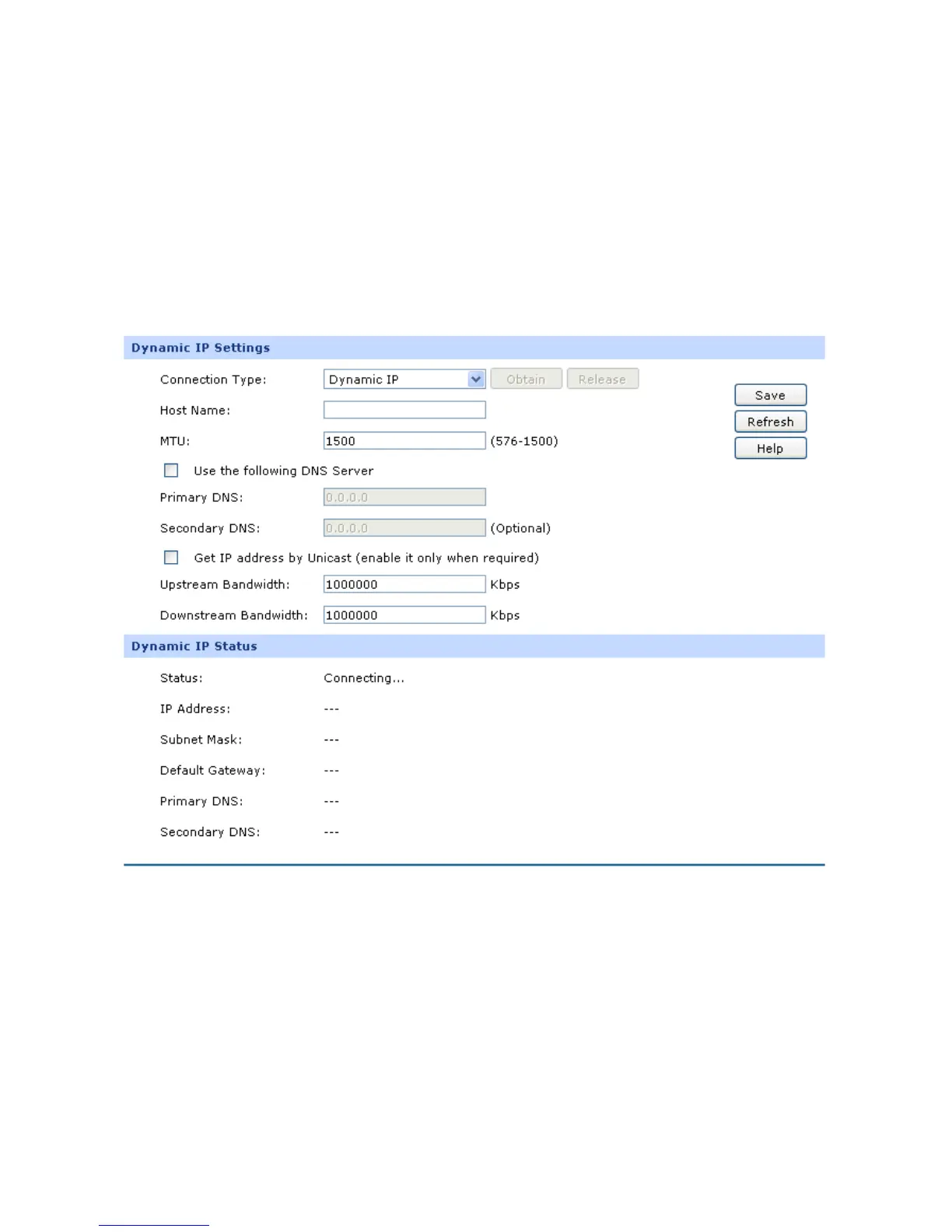 Dynamic IP connection type to obtain the parameters for WAN port automatically.
