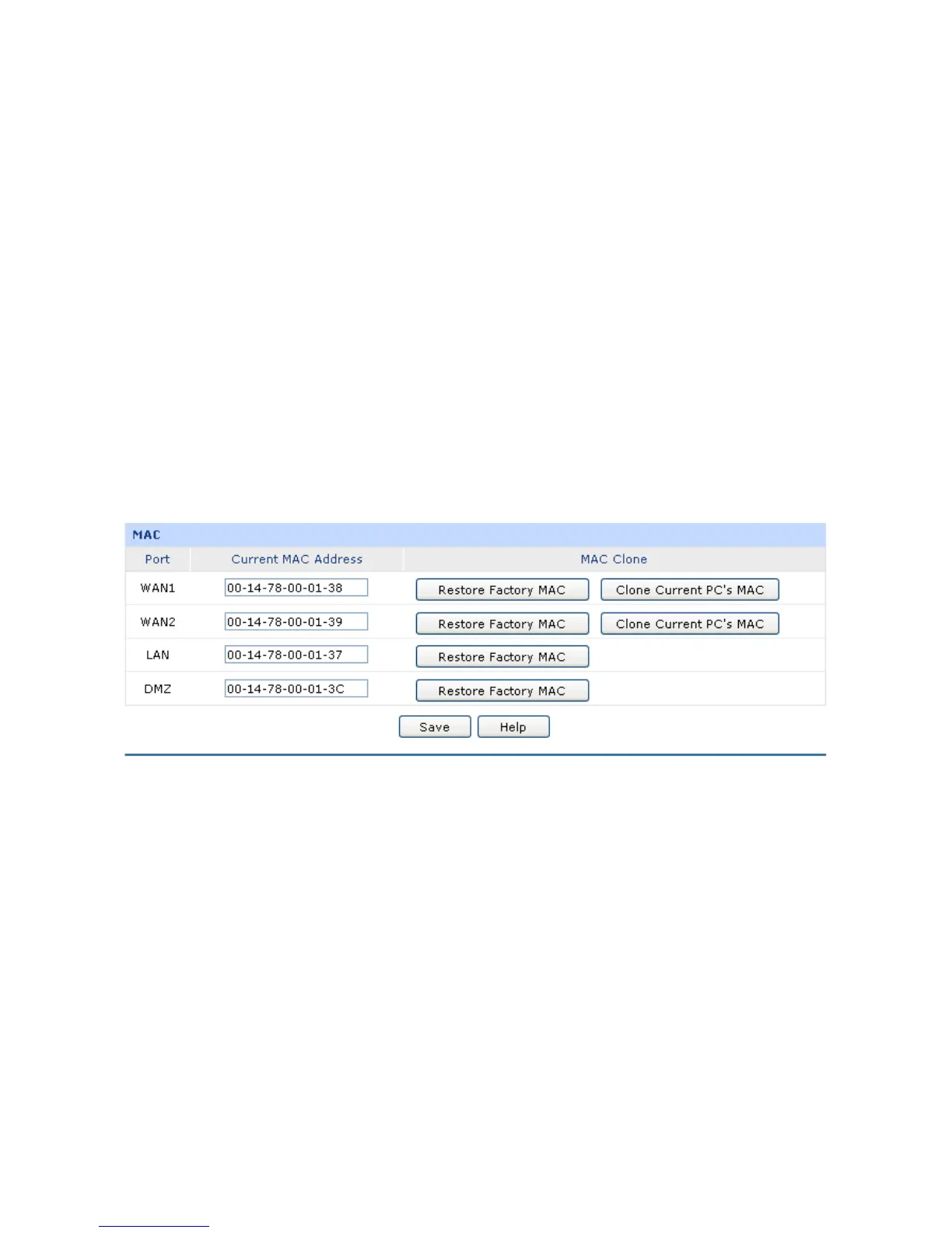 Set the MAC Address for DMZ port: