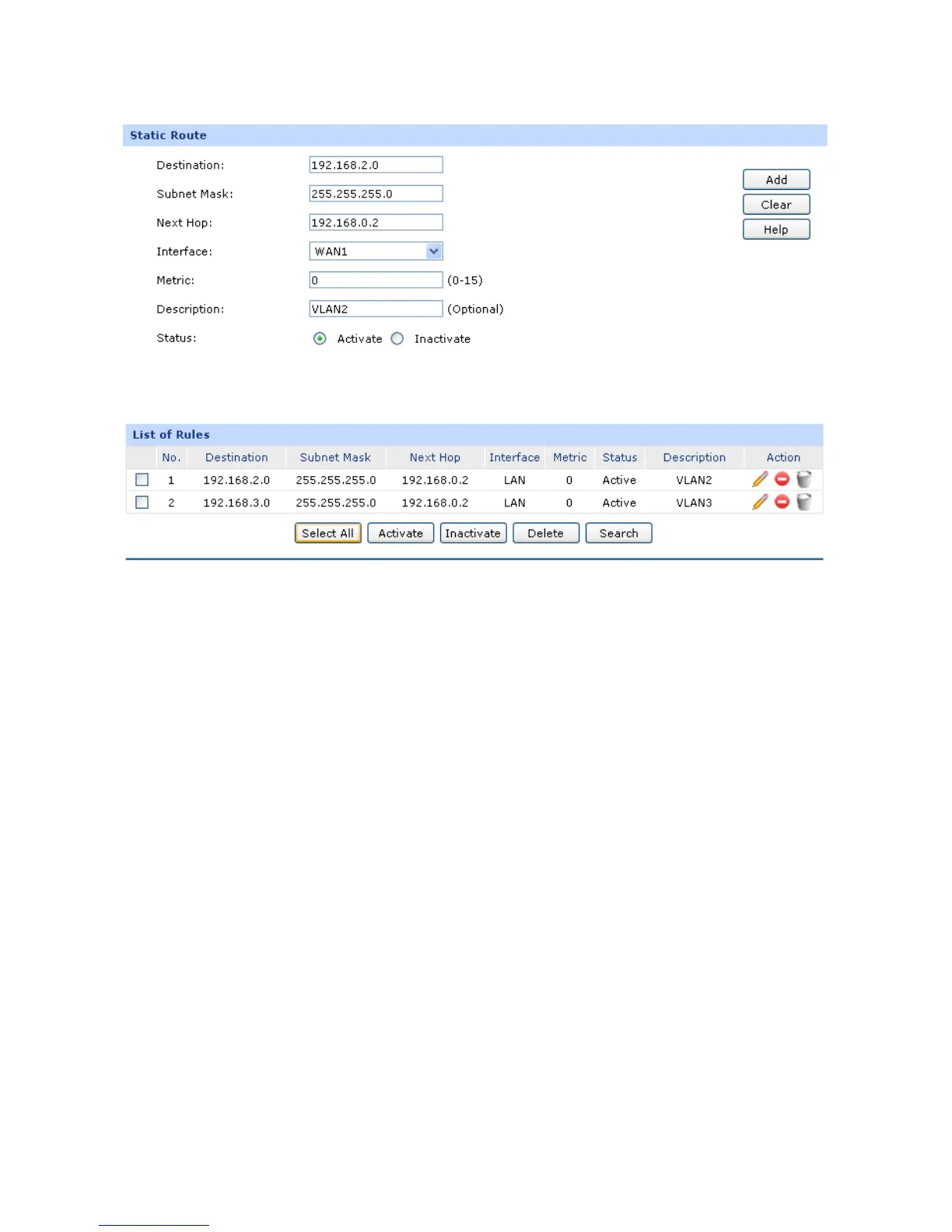 Choose the menu Advanced→Routing→Static Route to load the following page.