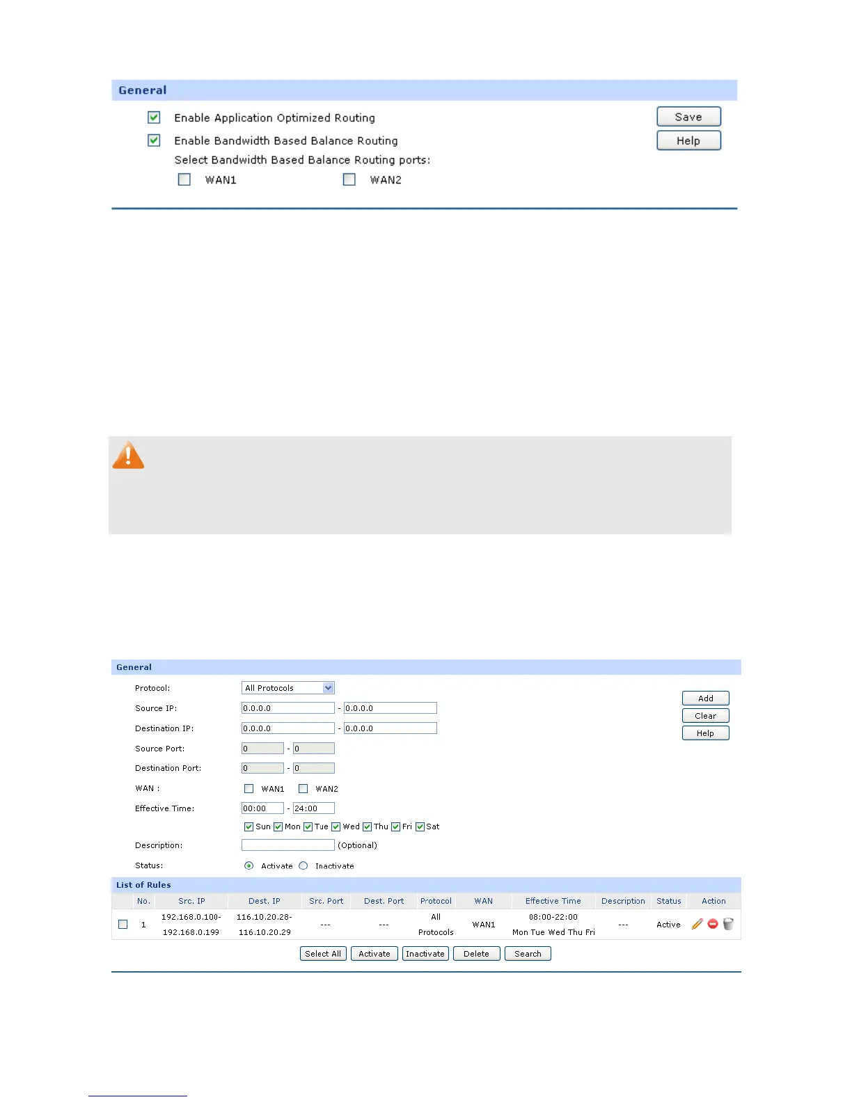 Load Balance of the specified WAN port will be enabled automatically if no routing rules are set.
