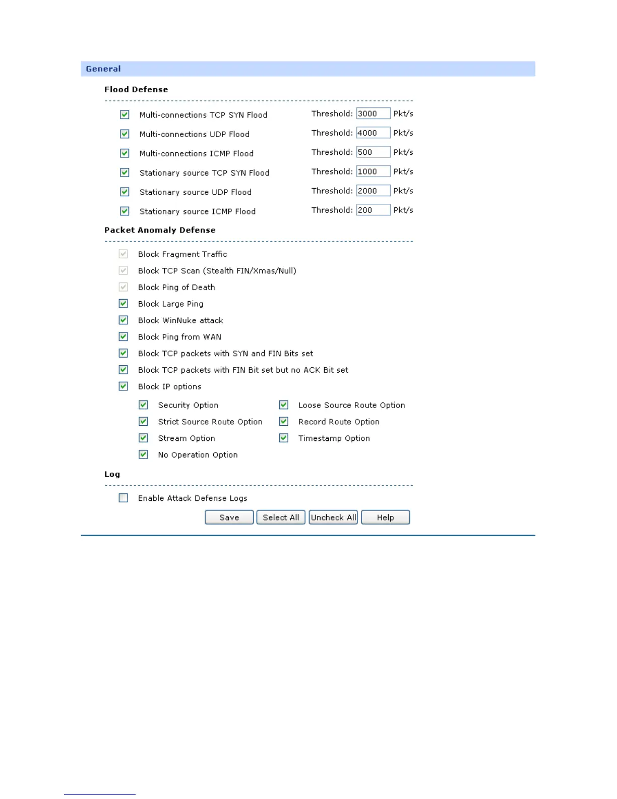 including TCP SYN, UDP, ICMP and so on. It is recommended to