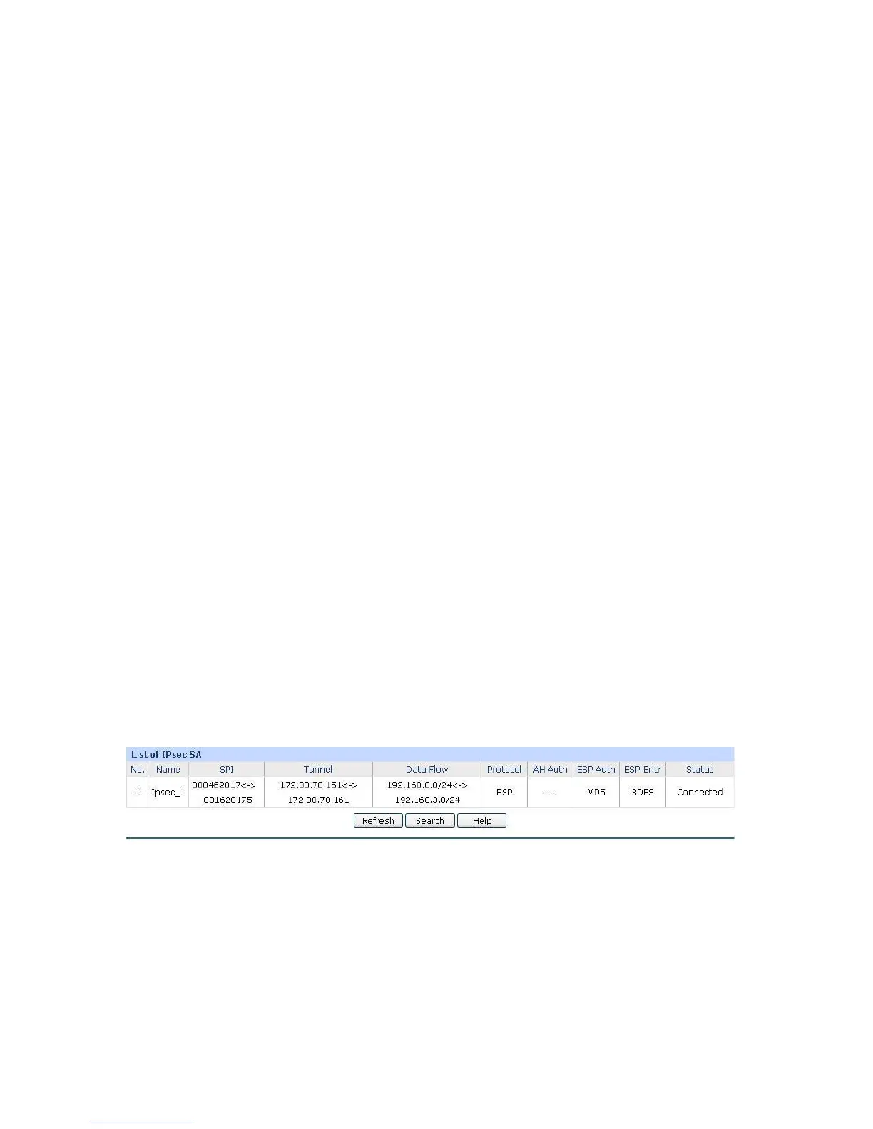 Choose the menu VPN→IPsec→IPsec SA to load the following page.