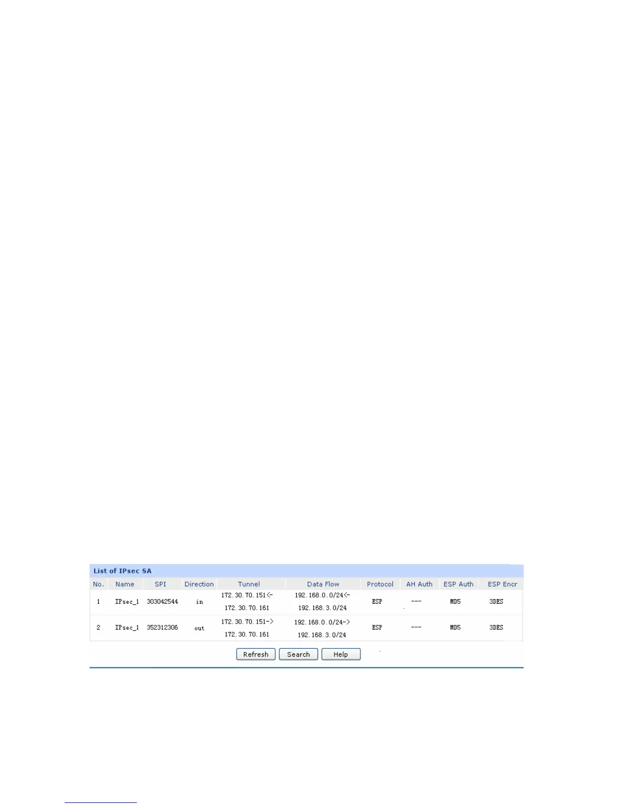 Choose the menu VPN→IPsec→IPsec SA to load the following page.