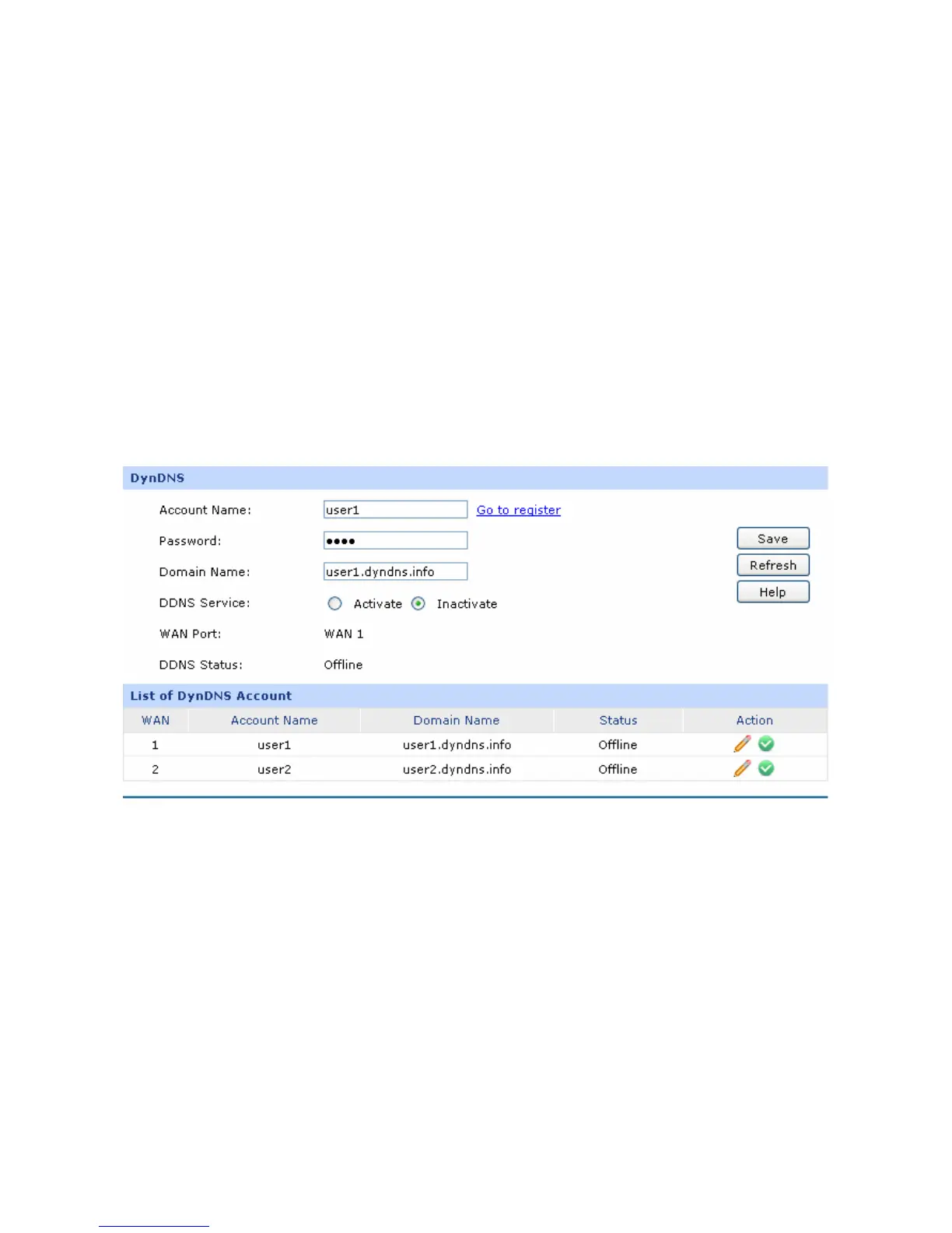 Choose the menu Services→Dynamic DNS→DynDNS to load the following page.