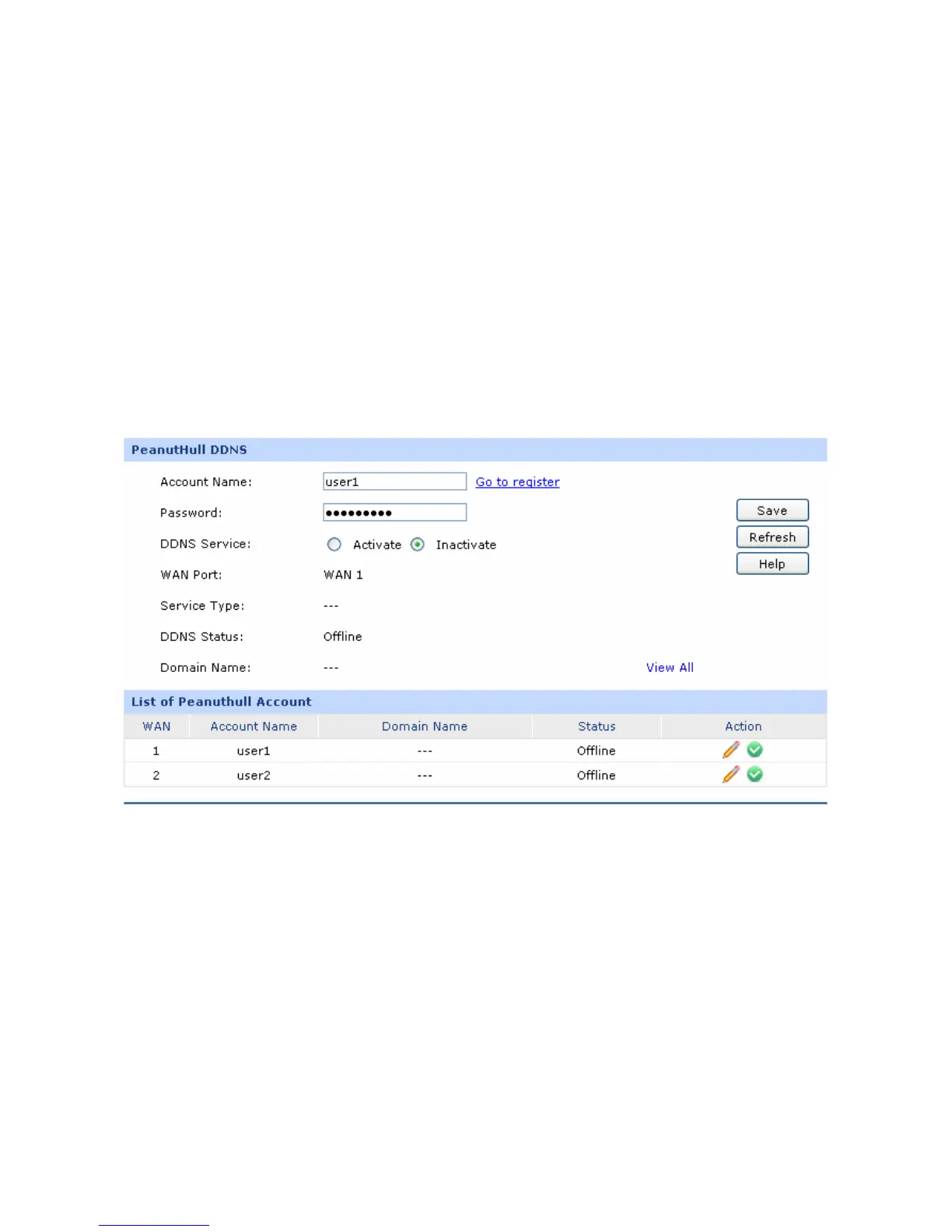 Choose the menu Services→Dynamic DNS→PeanutHull to load the following page.