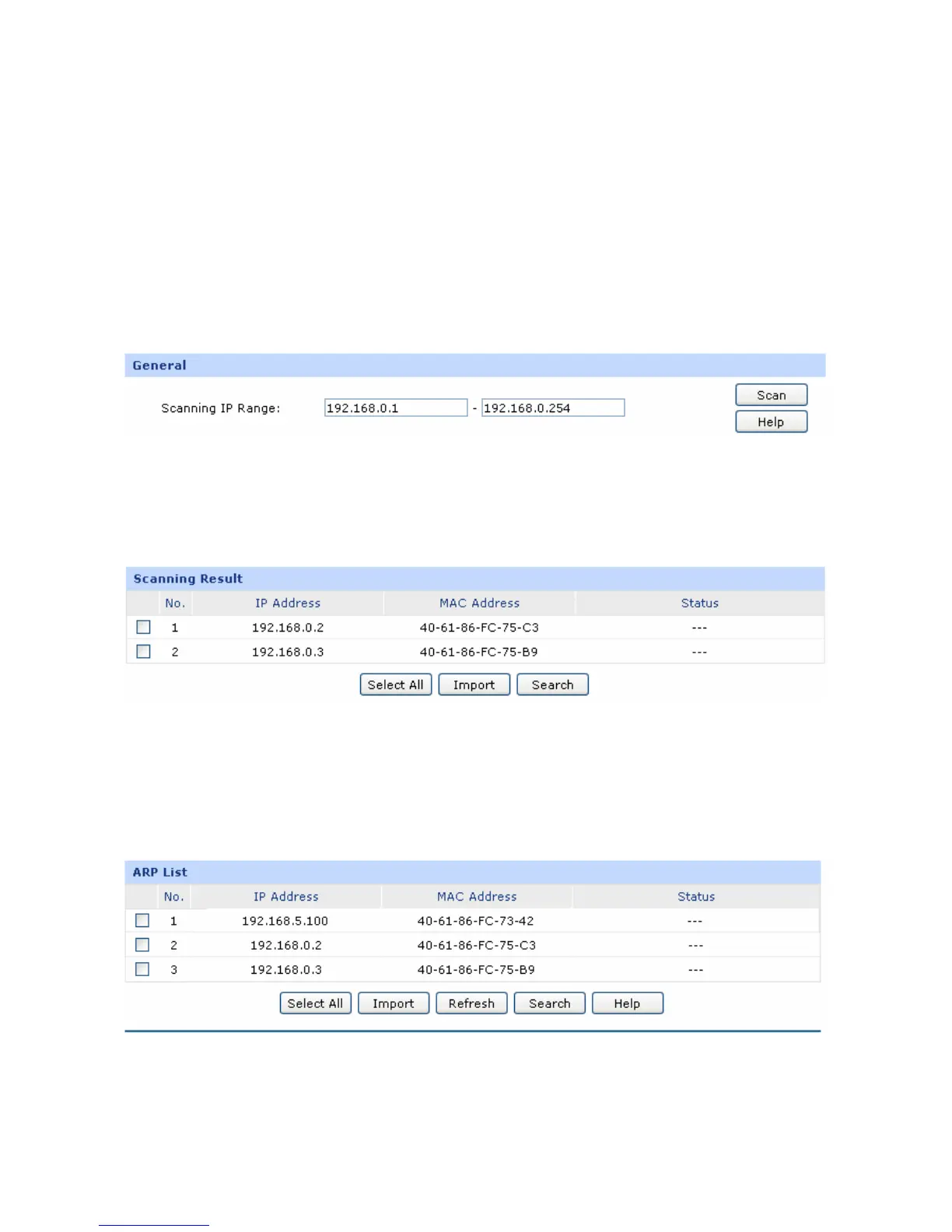 You can configure IP-MAC Binding manually or by ARP Scanning. For the first time configuration,