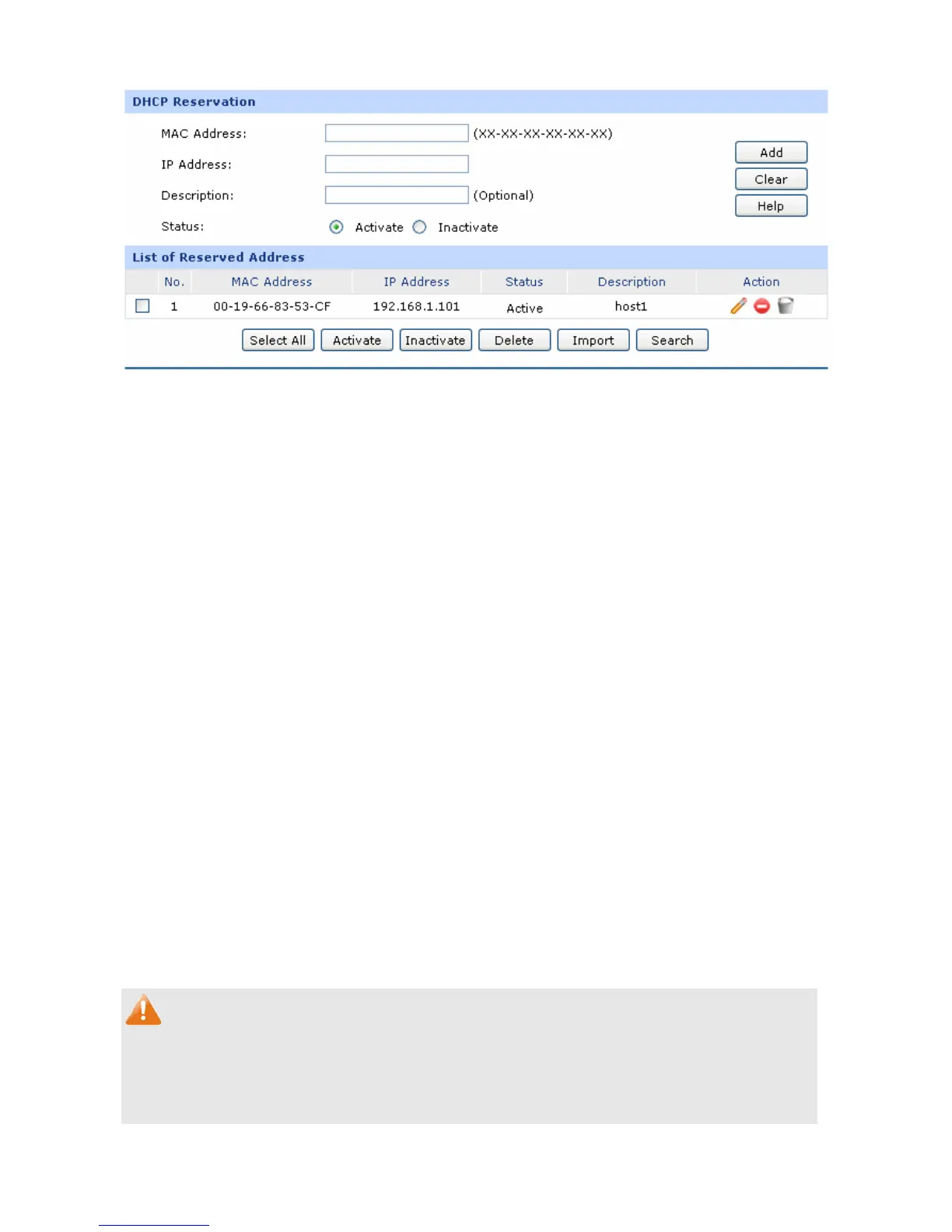 clicking <Import> button in Figure 3-15 DHCP Reservation.