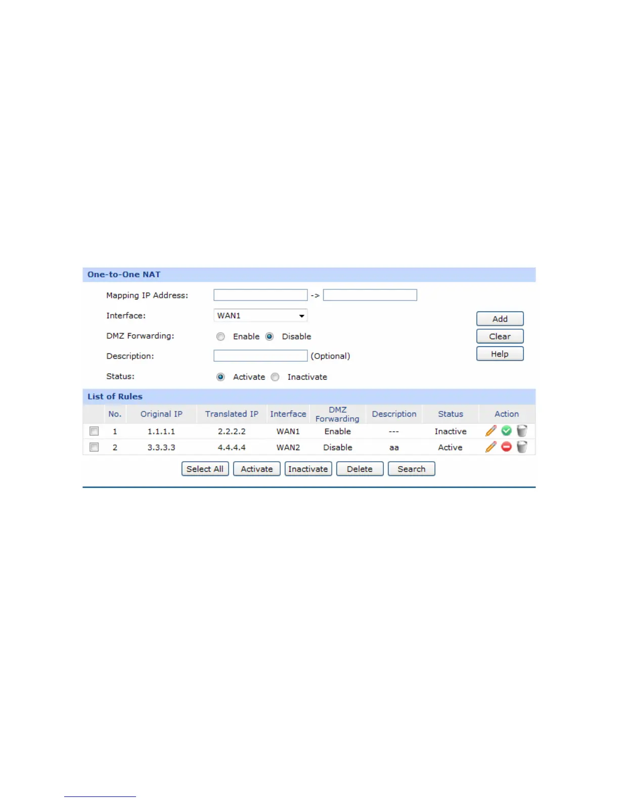 Choose the menu Advanced→NAT→One-to-One NAT to load the following page.
