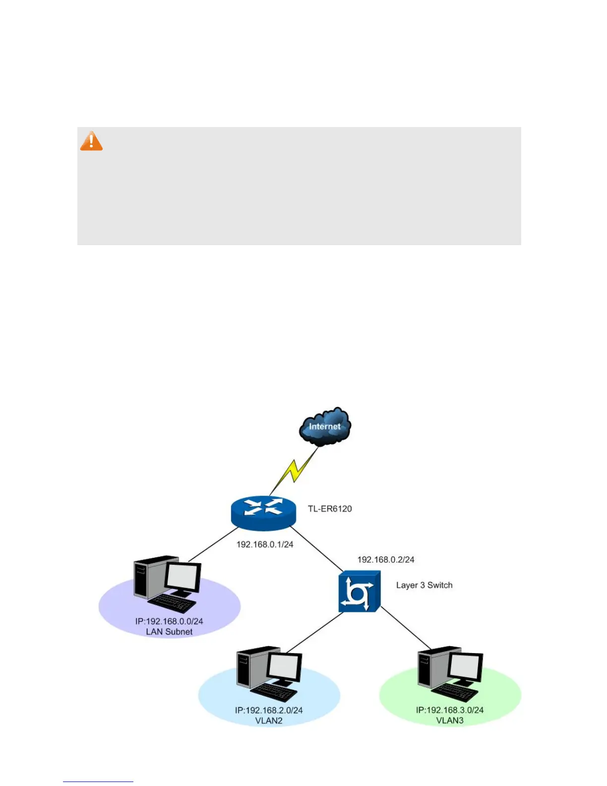 The LAN subnet of TL-ER6120 is 192.168.0.0 /24, the subnet of VLAN2 under a three layer switch is