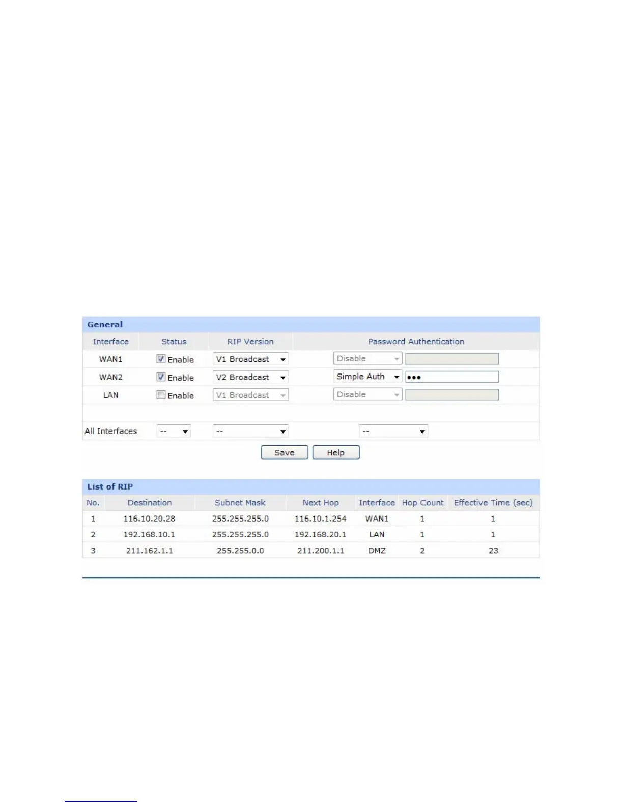 Choose the menu Advanced→Routing→RIP to load the following page.