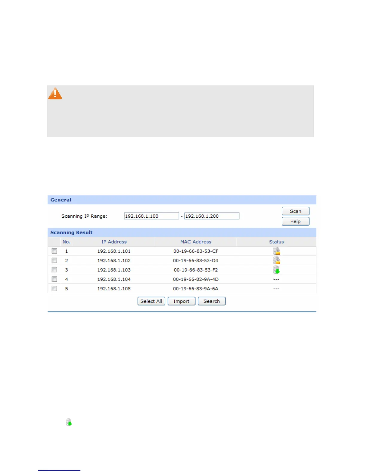 The entries displayed on the List of Scanning Result do not mean the IP and MAC addresses are