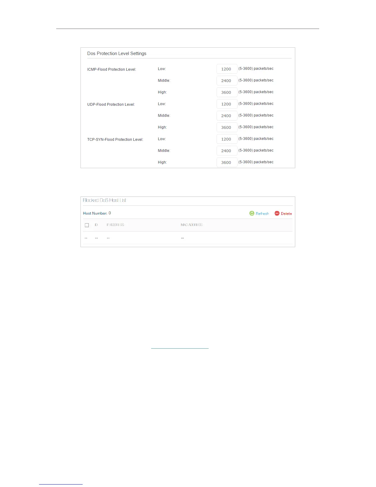 2. The protection will be triggered immediately when the number of packets exceeds the preset threshold value,