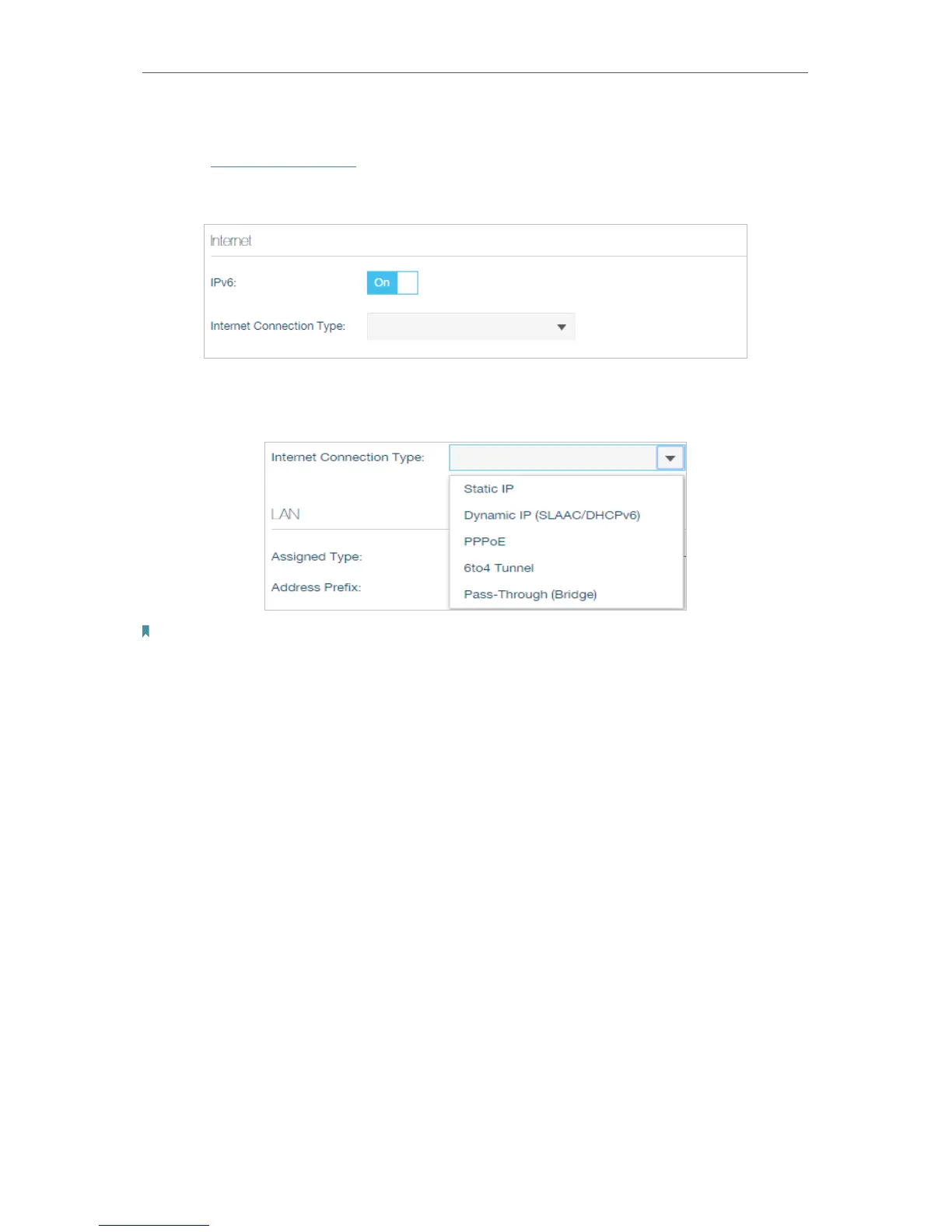 • Dynamic IP: Select this type if your ISP uses Dynamic IPv6 address assignment.