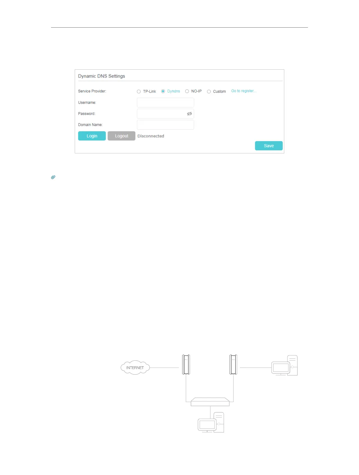 4. Log in with your DDNS account, select a service provider. Enter the username,