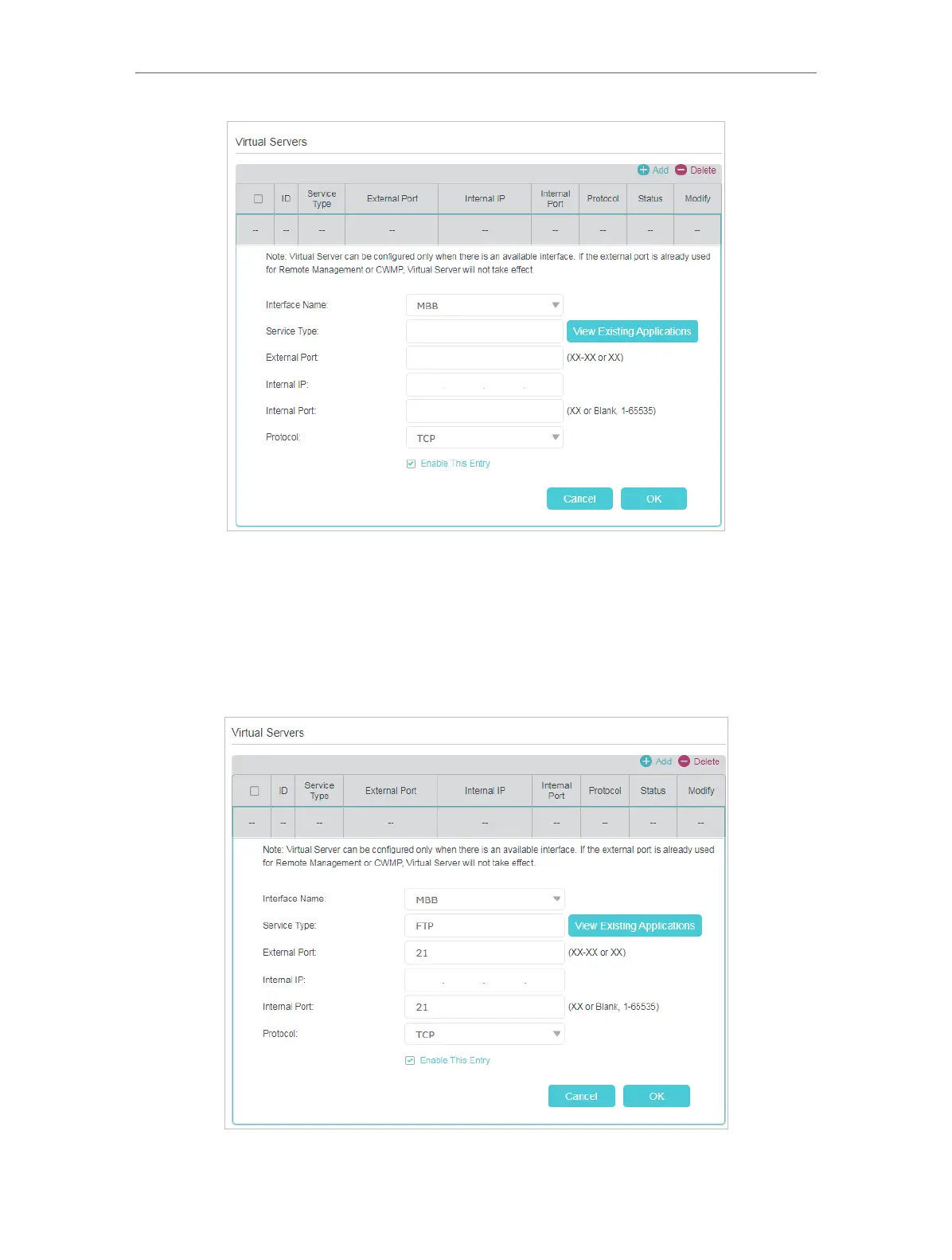(e.g. 21-25). Leave the Internal Port blank if it is the same as the External Port or enter