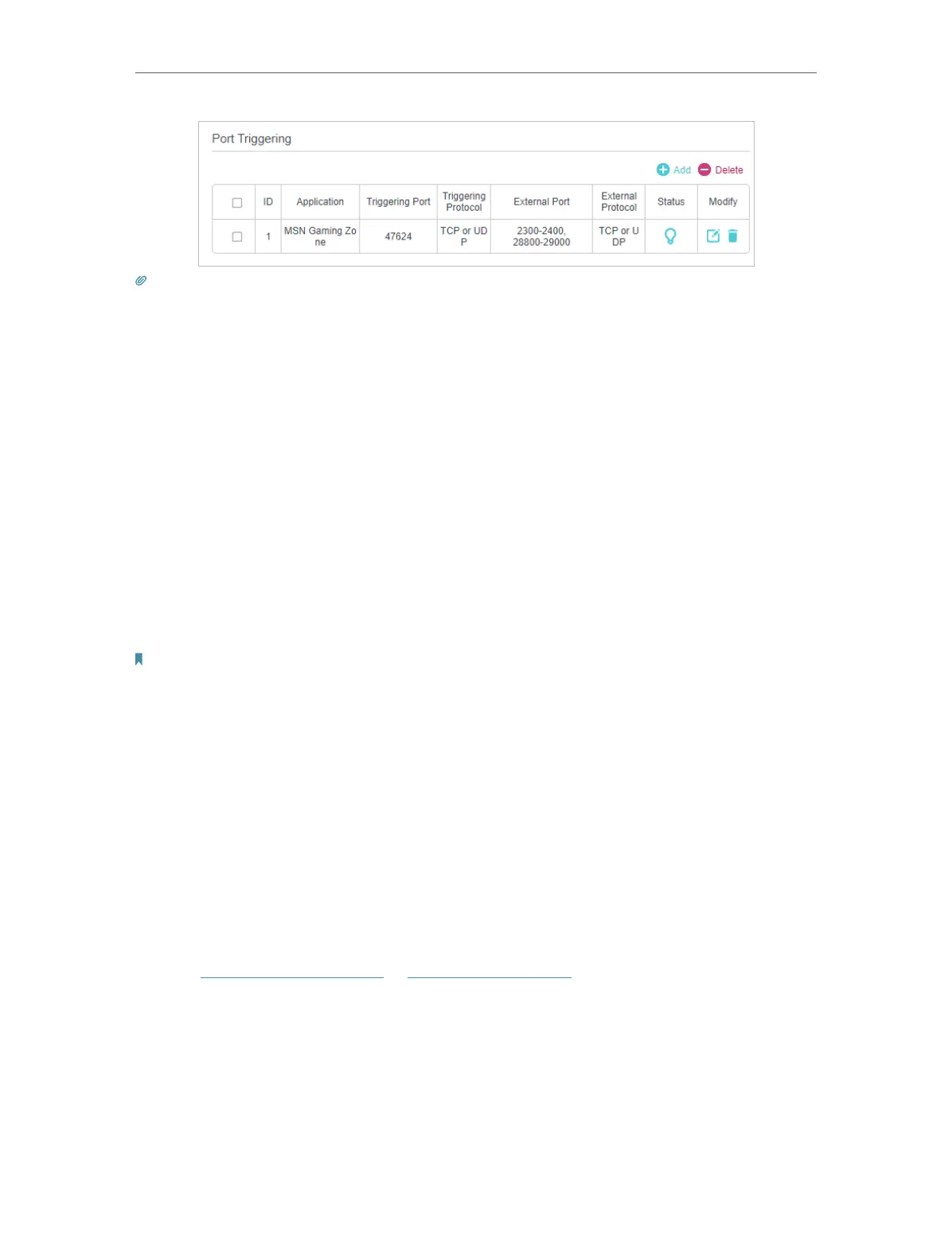 • You can add multiple port triggering rules according to your network need.