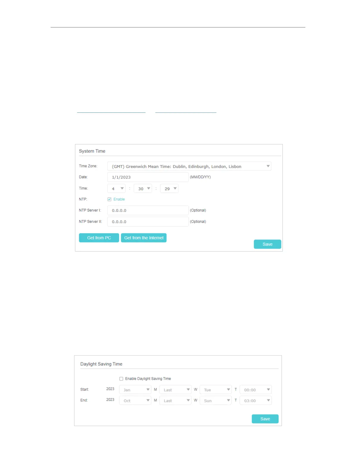 2. Go to Advanced > System Tools > Time Settings page.