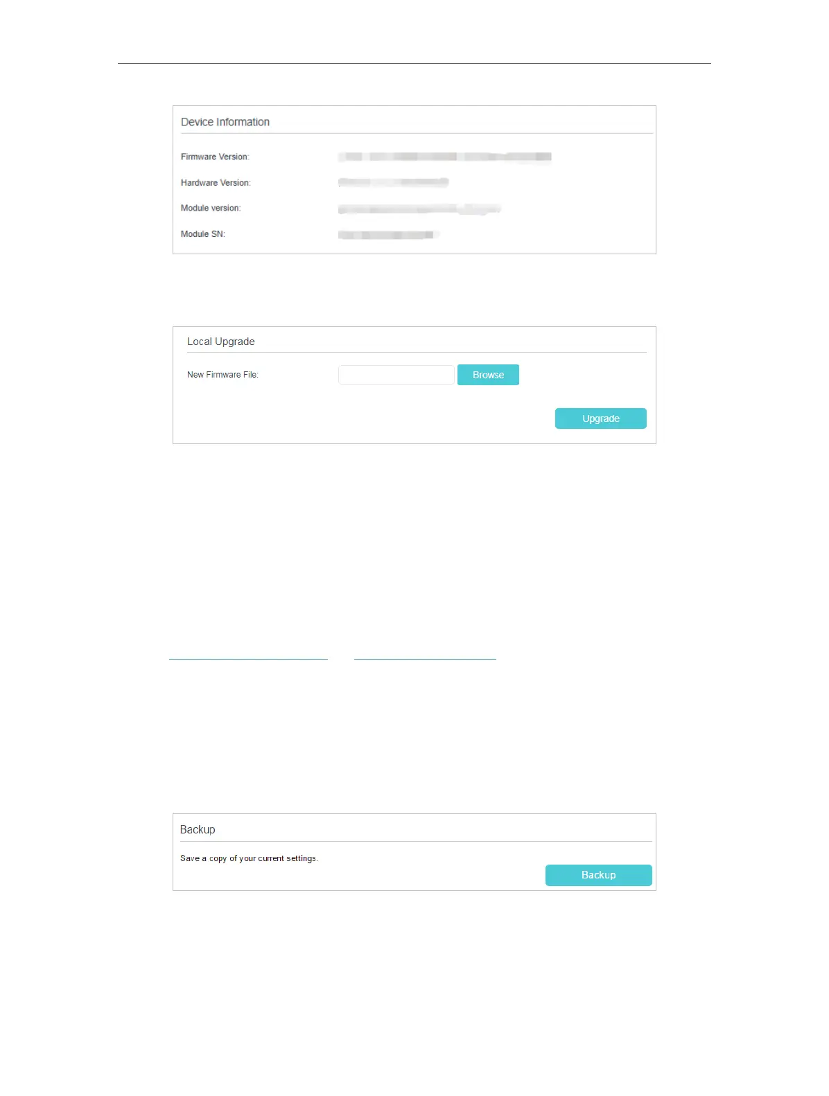 Click Backup to save a copy of the current settings to your local computer. A conf.bin