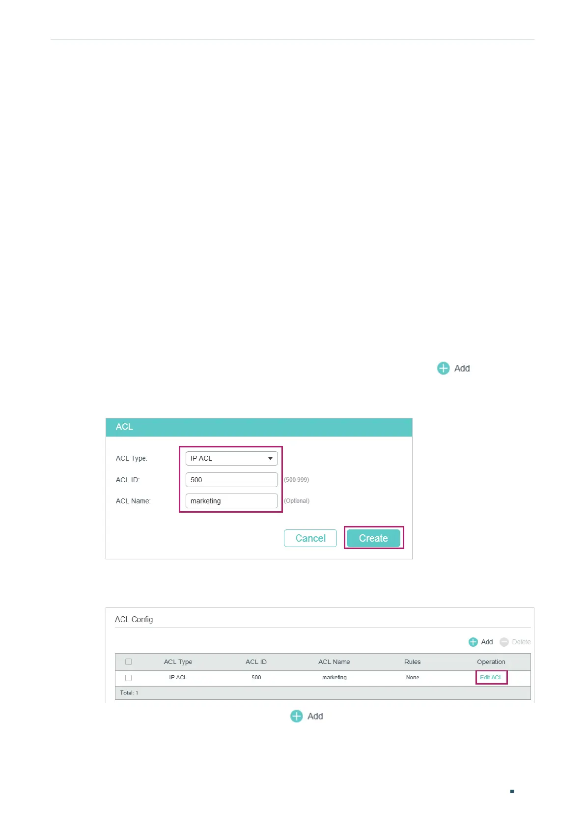 3) On the ACL configuration page, click .